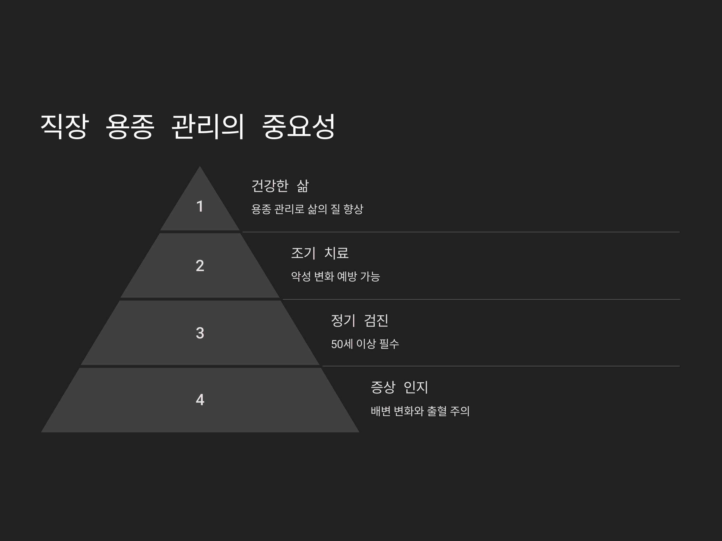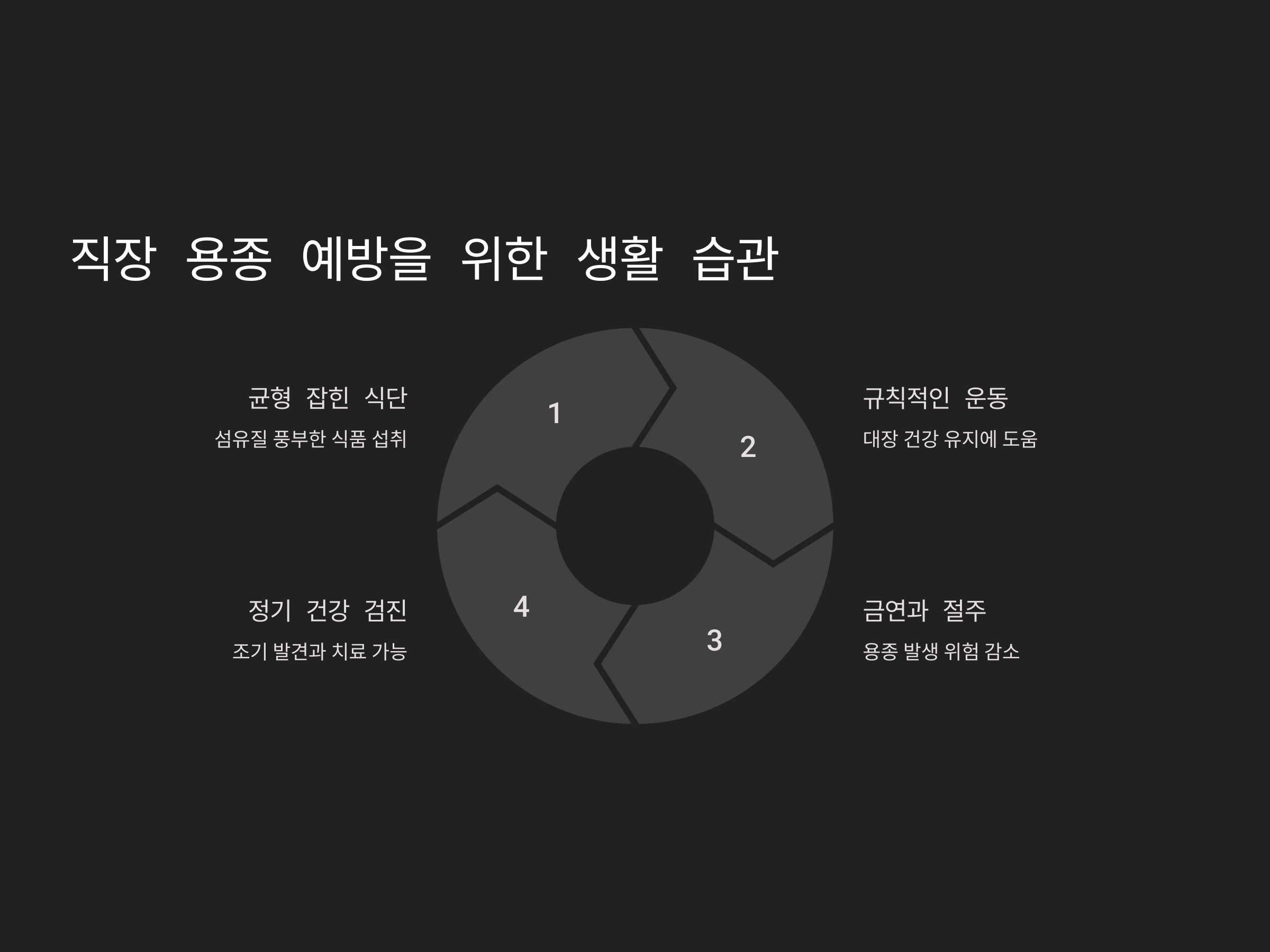 - 흡연과 음주: 흡연과 과도한 음주는 용종 발생에 영향을 줄 수 있습니다.