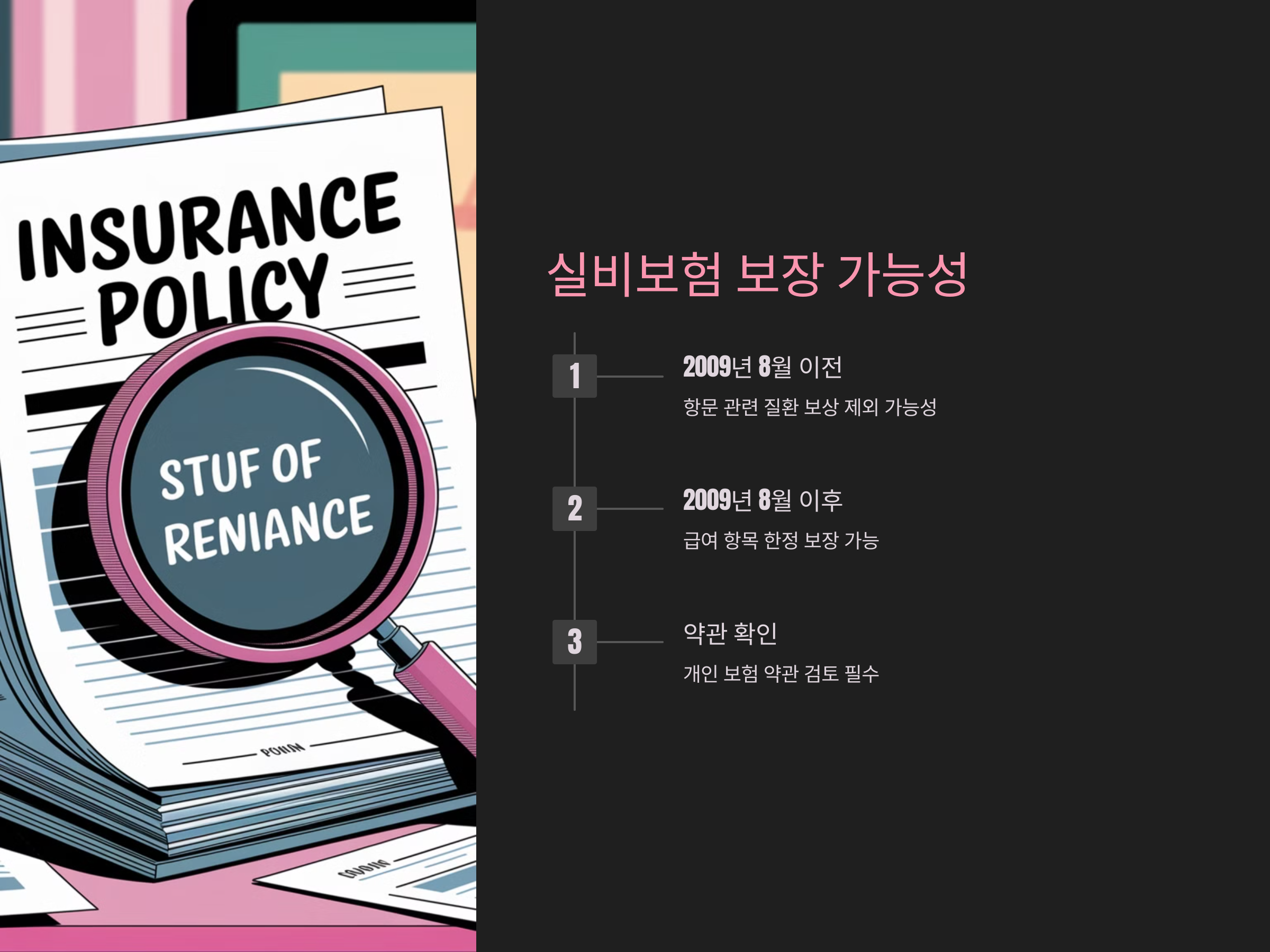 - 2009년 8월 이후 가입자: 이후에 가입한 실비보험의 경우, 항문 관련 질환에 대한 보장이 가능하지만, 급여 항목에 한정되는 경우가 많습니다. 즉, 건강보험이 적용되는 급여 항목에 대해서만 실비보험 청구가 가능하며, 비급여 항목은 보장에서 제외될 수 있습니다. citeturn0search3