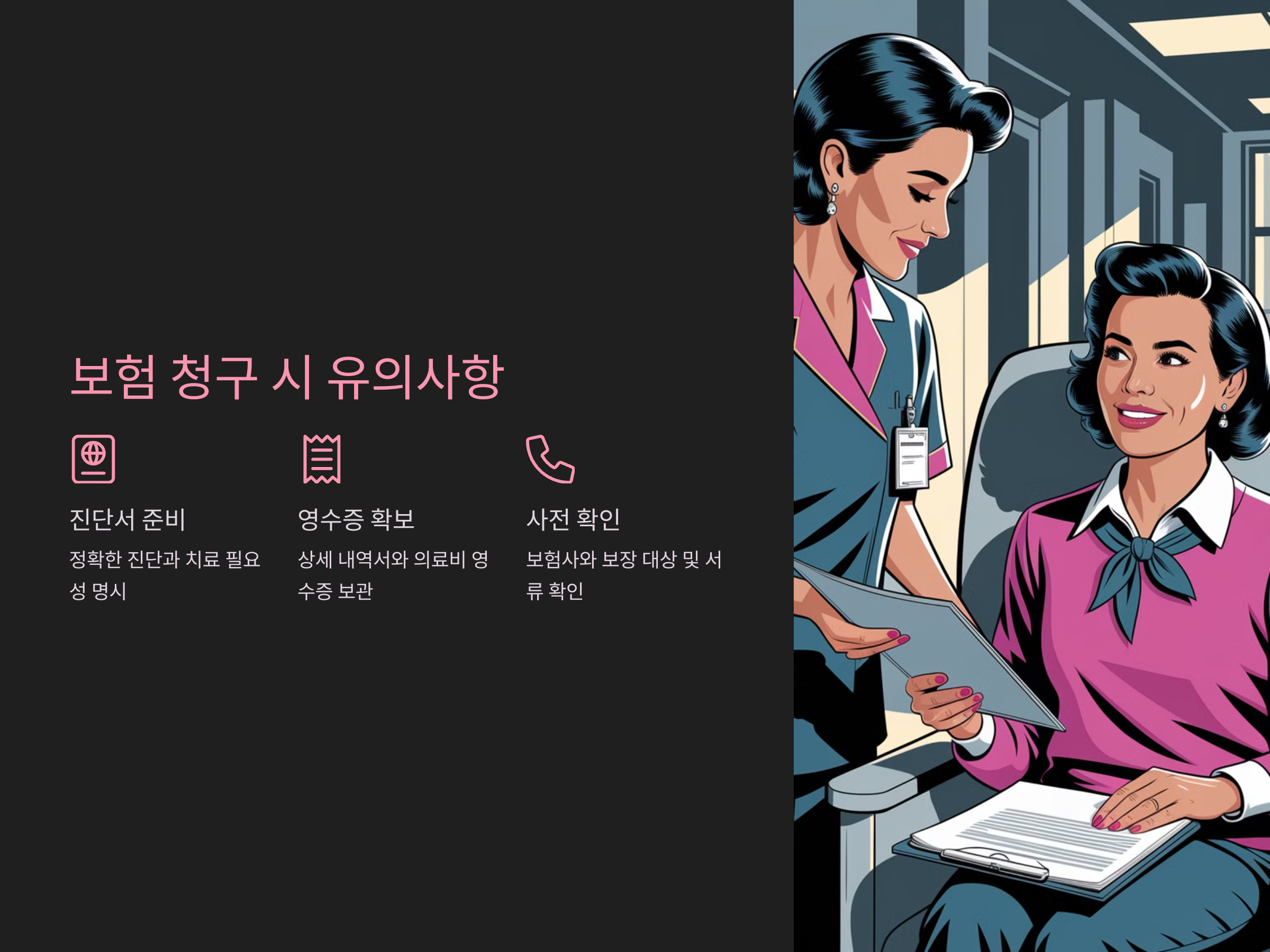 - 보험사와의 사전 확인: 치료를 받기 전에 본인의 보험사에 연락하여 해당 시술이 보장 대상인지, 필요한 서류는 무엇인지 확인하는 것이 좋습니다.