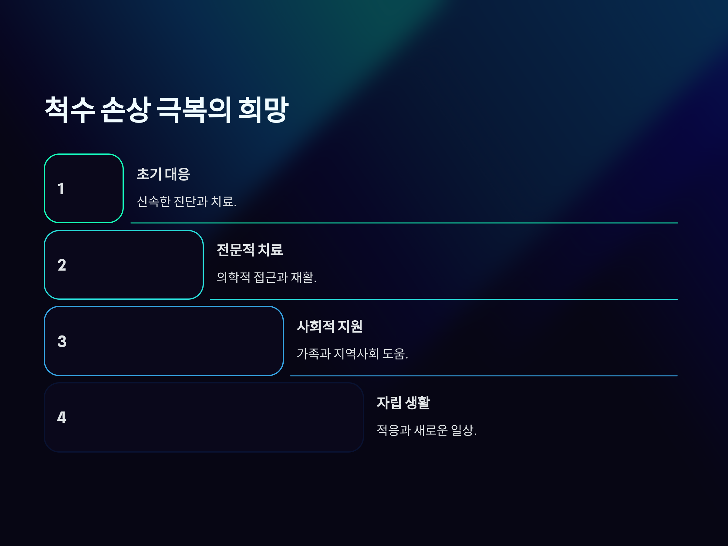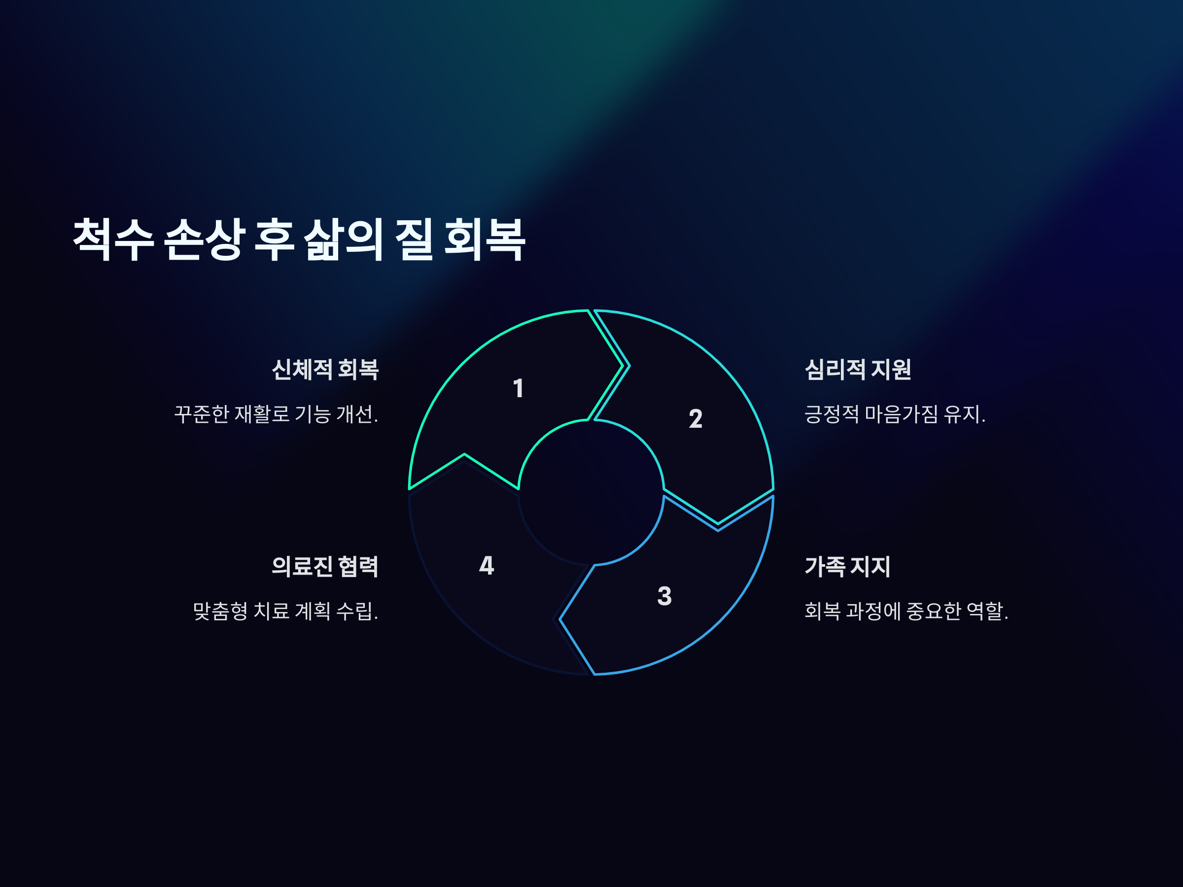 척수 손상 후 삶의 질을 향상시키기 위한 노력은 신체적, 정신적 회복을 동시에 고려해야 하며, 환자 개개인에 맞는 맞춤형 치료가 이루어져야 합니다.