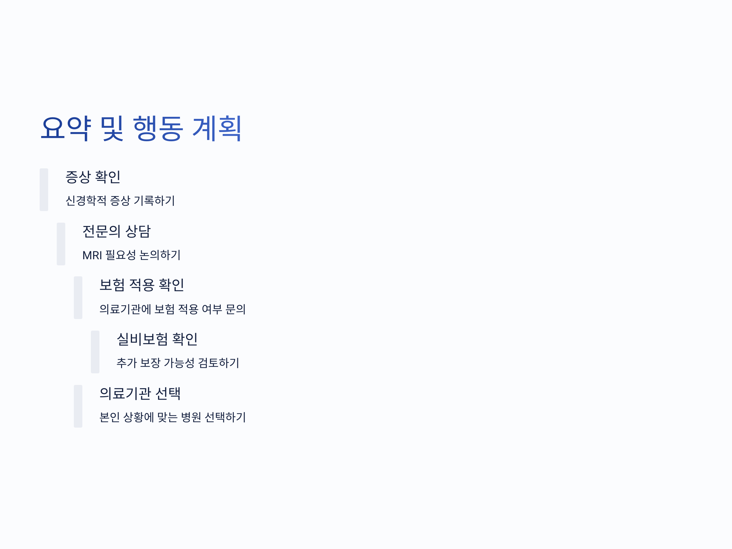 척추 협착증의 정확한 진단과 치료를 위해 MRI 검사는 매우 중요합니다. 최근 건강보험 적용 범위의 확대에 따라, 의사의 판단 하에 척추 협착증이 의심되는 경우 MRI 검사에 대한 건강보험 혜택을 받을 수 있게 되었습니다. 그러나 건강보험 적용 여부와 본인 부담금은 의료기관의 종별과 개인의 보험 상황에 따라 달라질 수 있으므로, 검사를 받기 전에 의료진과 충분히 상담하고, 자신의 보험 약관을 확인하는 것이 중요합니다. 이를 통해 의료비 부담을 최소화하면서 적절한 진단과 치료를 받을 수 있을 것입니