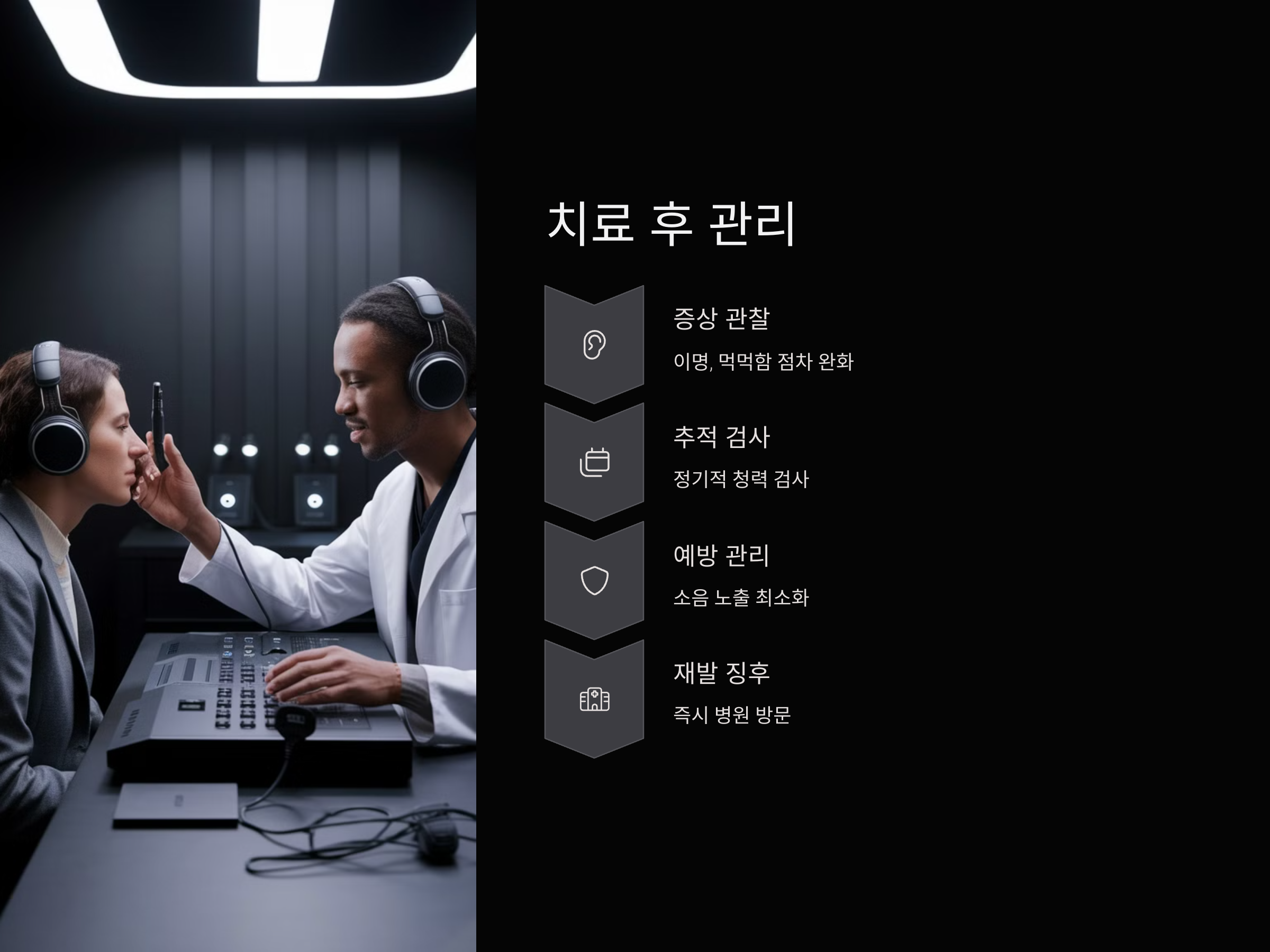 스테로이드 복용은 단순히 약물투여로 끝나는 것이 아니라, 치료 후 경과 관찰과 추적 청력 검사까지 이어져야 합니다. 이는 치료의 효과를 검증하고, 재발을 방지하기 위한 조치입니다.