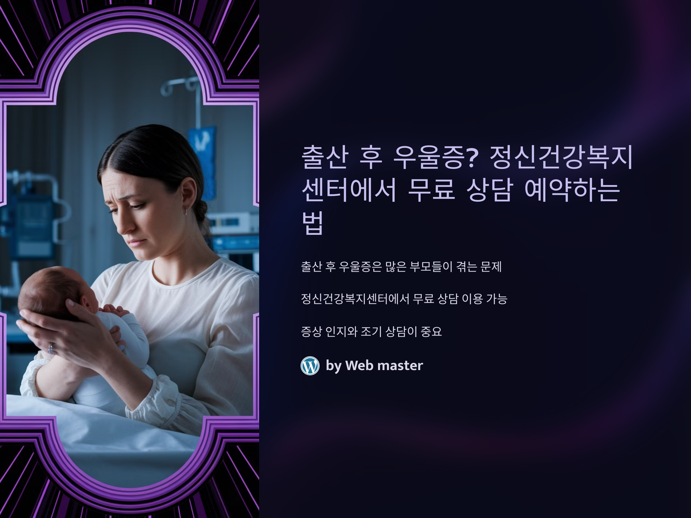 출산 후 우울증은 단순한 기분 변화로 치부해서는 안 됩니다. 출산 후 우울증은 정신적, 육체적으로 큰 영향을 미칠 수 있기 때문에 조기 상담과 치료가 중요합니다. 이 글에서는 우울증의 증상부터, 정신건강복지센터에서 제공하는 상담 서비스까지 안내하고, 무료 상담 예약을 위한 절차를 설명하겠습니다.