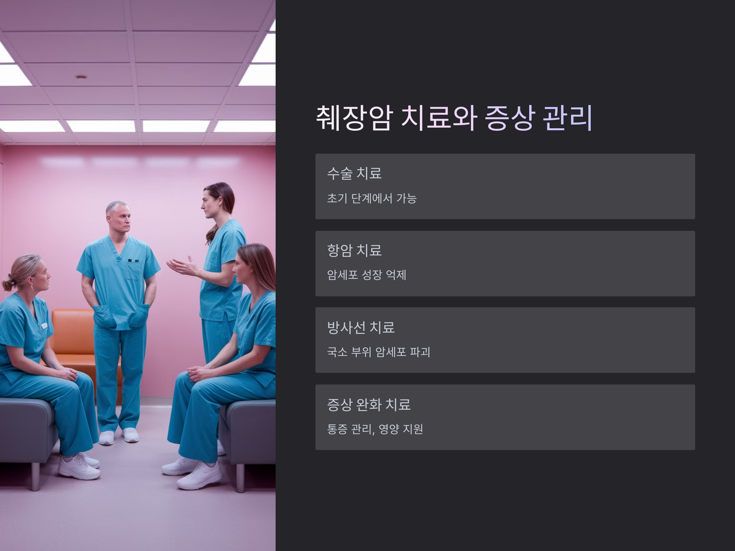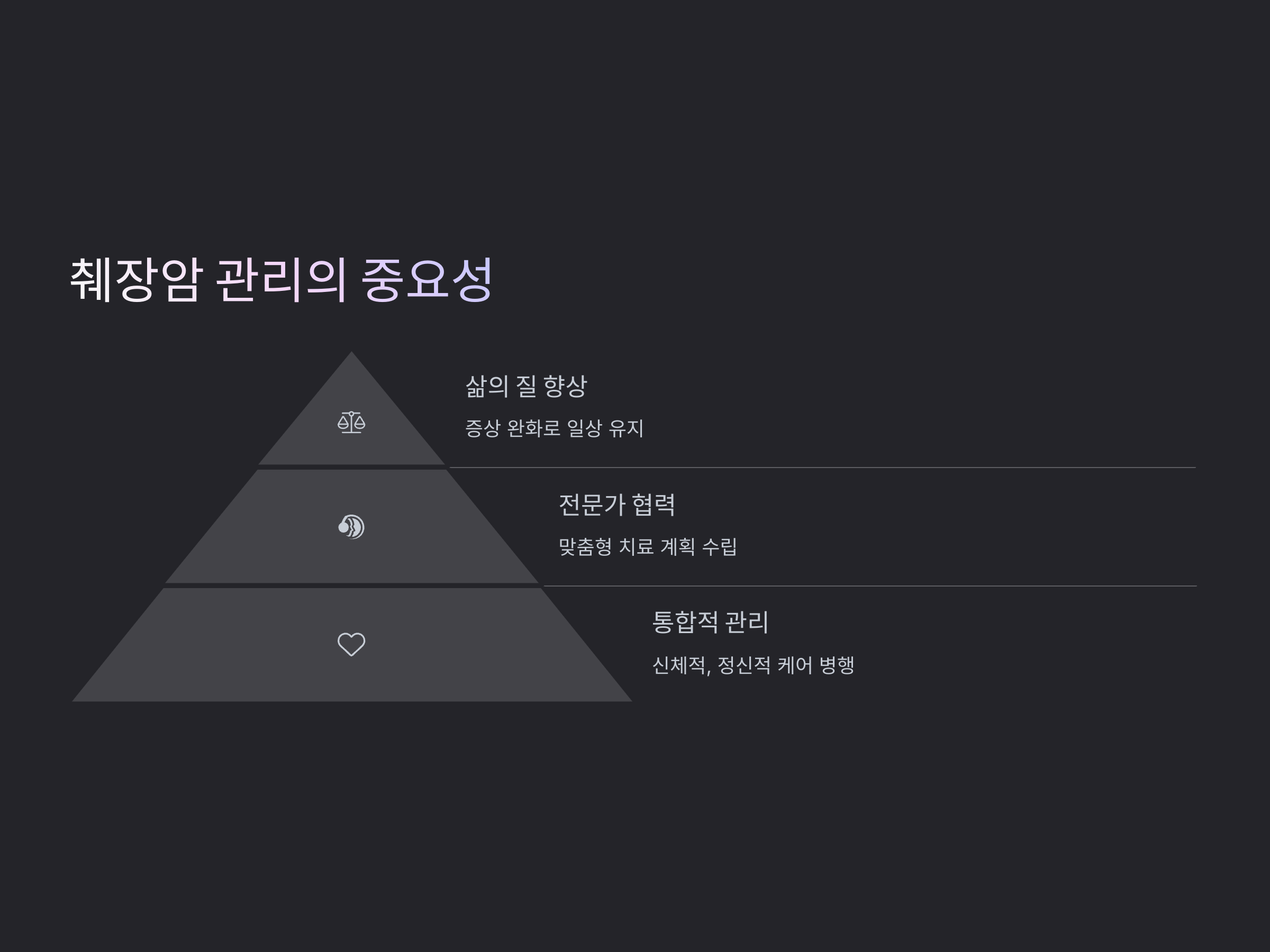 췌장암 진행으로 인한 허리통증과 식욕 감소는 환자들에게 큰 어려움을 주는 증상입니다. 그러나 적절한 통증 관리와 식이요법을 통해 증상을 완화하고, 더 나은 삶의 질을 유지할 수 있습니다. 췌장암의 치료는 다양한 방법이 있지만, 각 환자에 맞춘 맞춤형 관리가 필요합니다. 전문가의 조언을 바탕으로 통증과 식욕 감소를 관리하며, 심리적 지원을 받는 것이 췌장암 환자들에게는 필수적입니다.