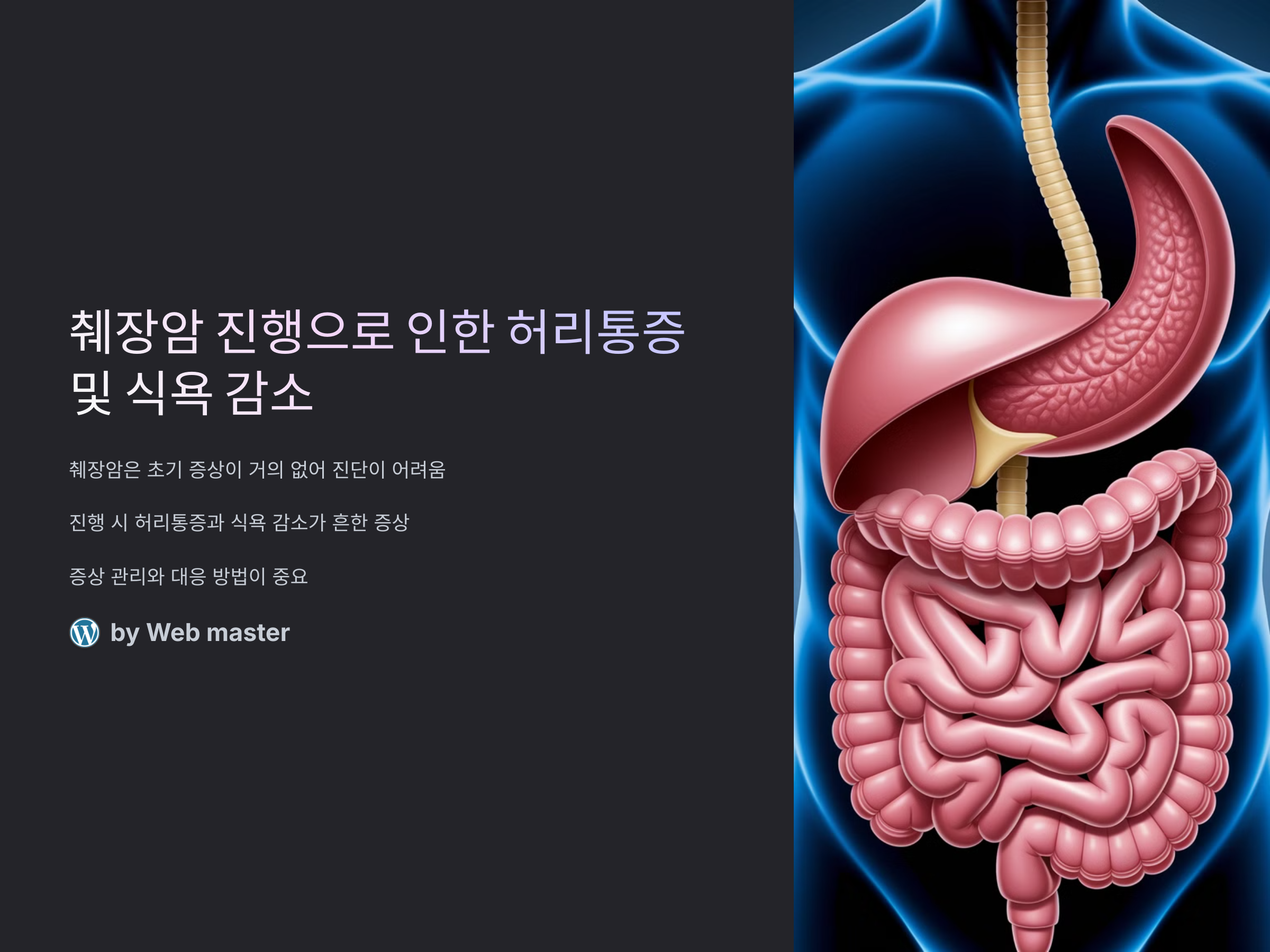 췌장암은 초기 증상이 거의 없어서 진단이 어렵고, 암이 진행될 때 여러 가지 신체적인 변화가 일어납니다. 특히 췌장암이 진행되면서 허리통증과 식욕 감소는 환자에게 매우 흔한 증상입니다. 이러한 증상이 나타날 때는 췌장암의 진행 정도와 관련이 있을 수 있기 때문에, 이를 어떻게 관리하고 대응할 수 있을지에 대해 알아보는 것이 중요합니다.