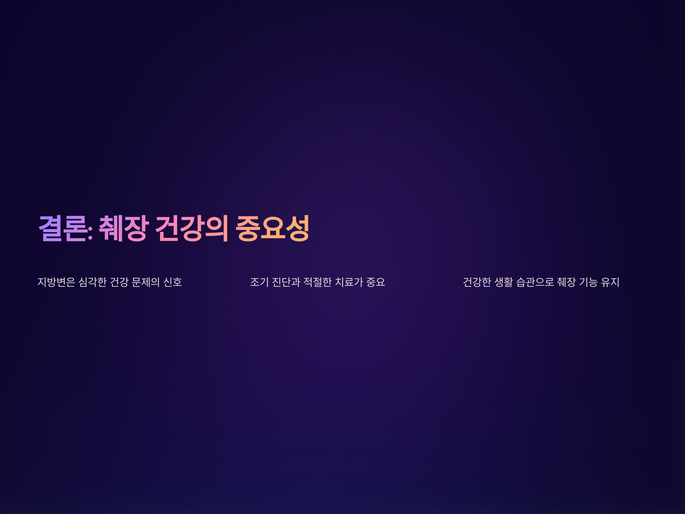 췌장 기능 저하로 인한 지방변은 단순한 소화불량으로 치부할 수 없으며, 건강에 심각한 영향을 미칠 수 있는 경고 신호일 수 있습니다. 빠르게 증상을 인식하고 적절한 치료를 받는 것이 매우 중요합니다. 이를 통해 췌장 건강을 유지하고, 소화