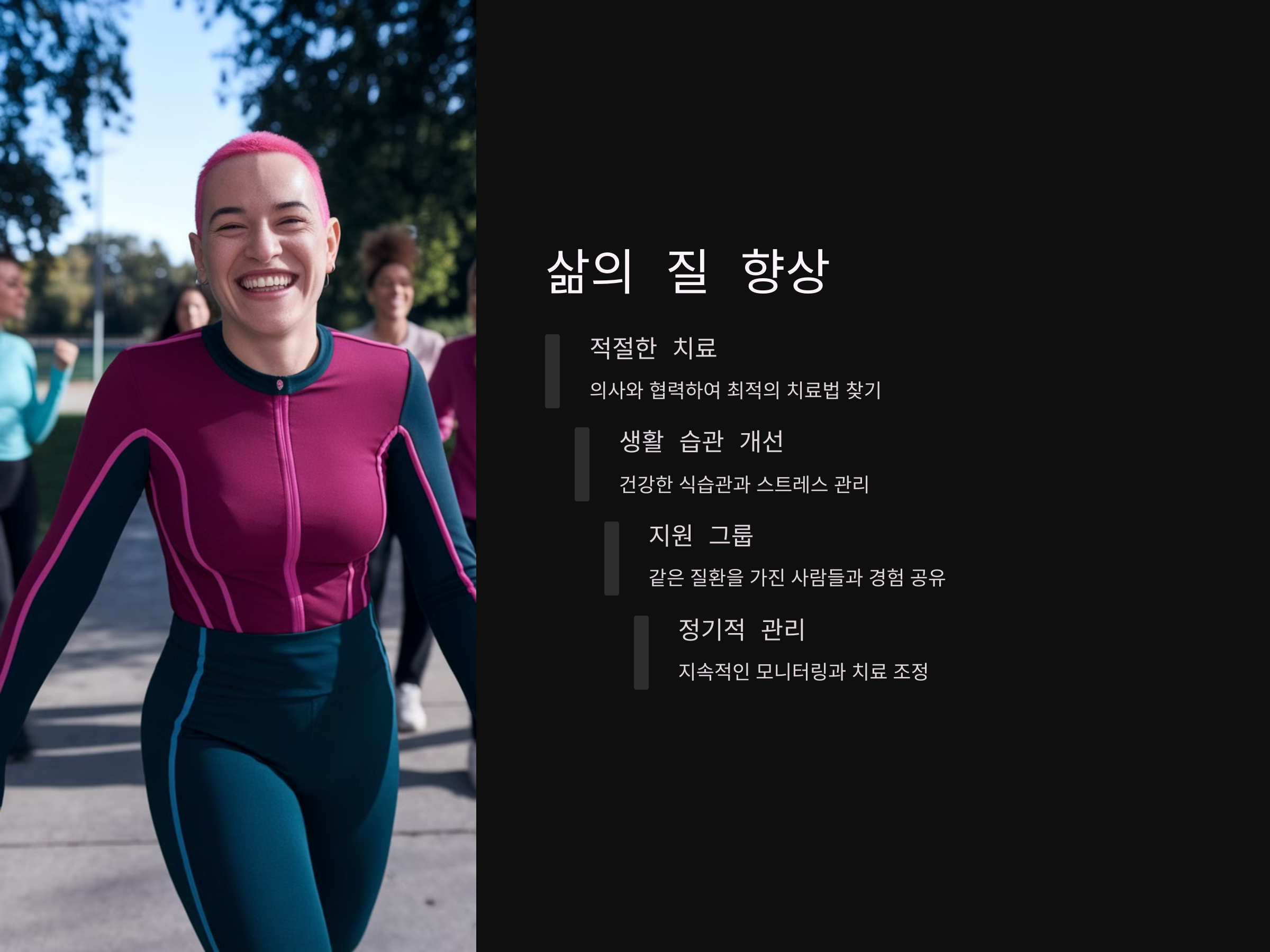 스트레스는 크론병의 증상을 악화시킬 수 있으므로, 스트레스 관리를 위한 방법도 필요합니다. 명상, 운동, 적절한 휴식 등이 스트레스를 줄이는 데 도움이 될 수 있습니다.