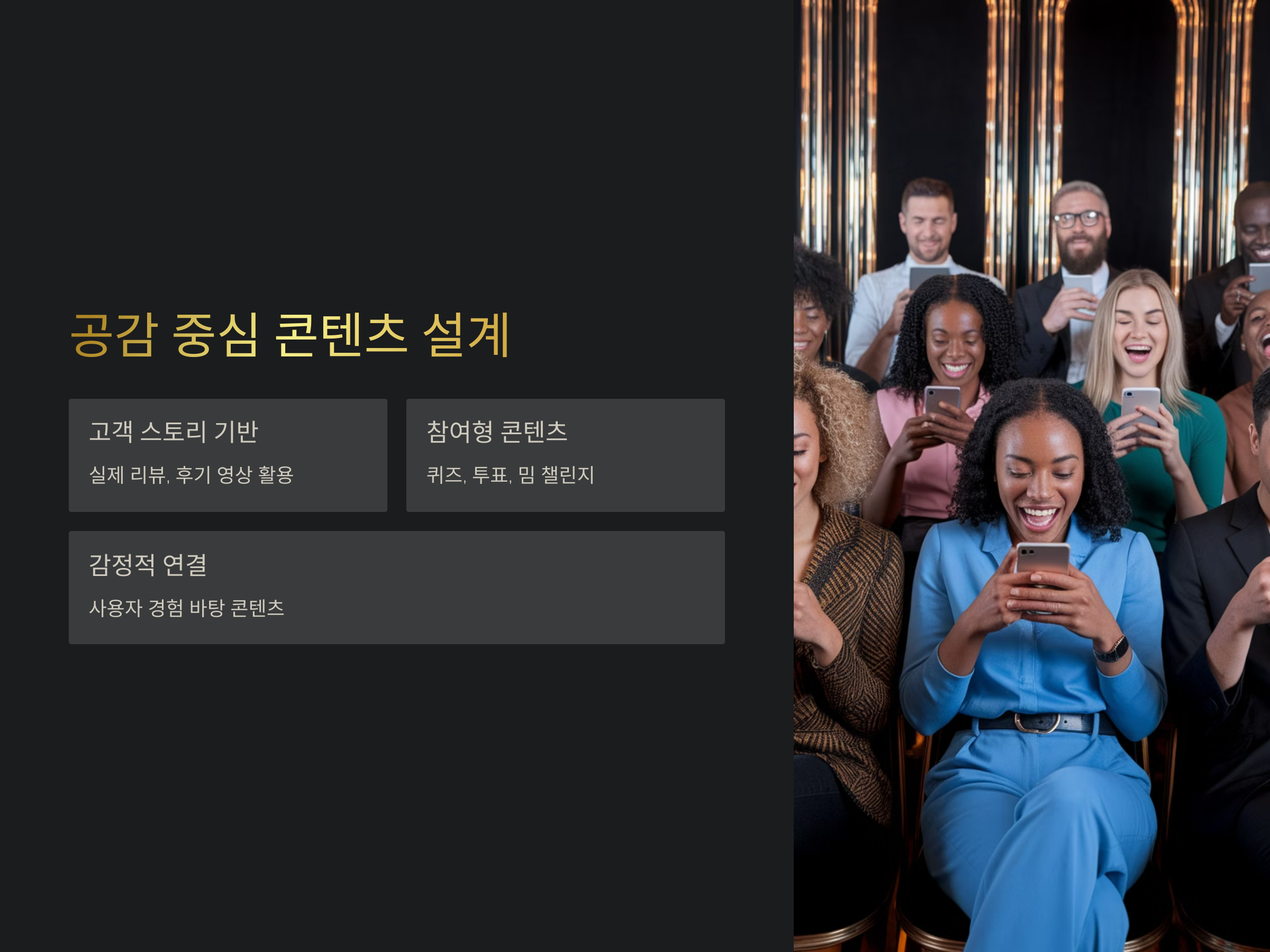 브랜드 콘텐츠의 성공 포인트는 이제 공감입니다. 예전처럼 제품 기능만 나열하는 콘텐츠는 반응을 얻기 어렵고, 대신 사용자 경험을 바탕으로 한 감정적 연결을 형성하는 것이 중요합니다. 이를 위해 가장 효과적인 방식은 '고객 스토리 기반 콘텐츠'입니다. 예를 들어, 고객의 실제 리뷰, 후기 영상, 사용 전후 변화 등을 스토리화하여 SNS에 공유하는 방식은 실질적인 신뢰도를 크게 높입니다.