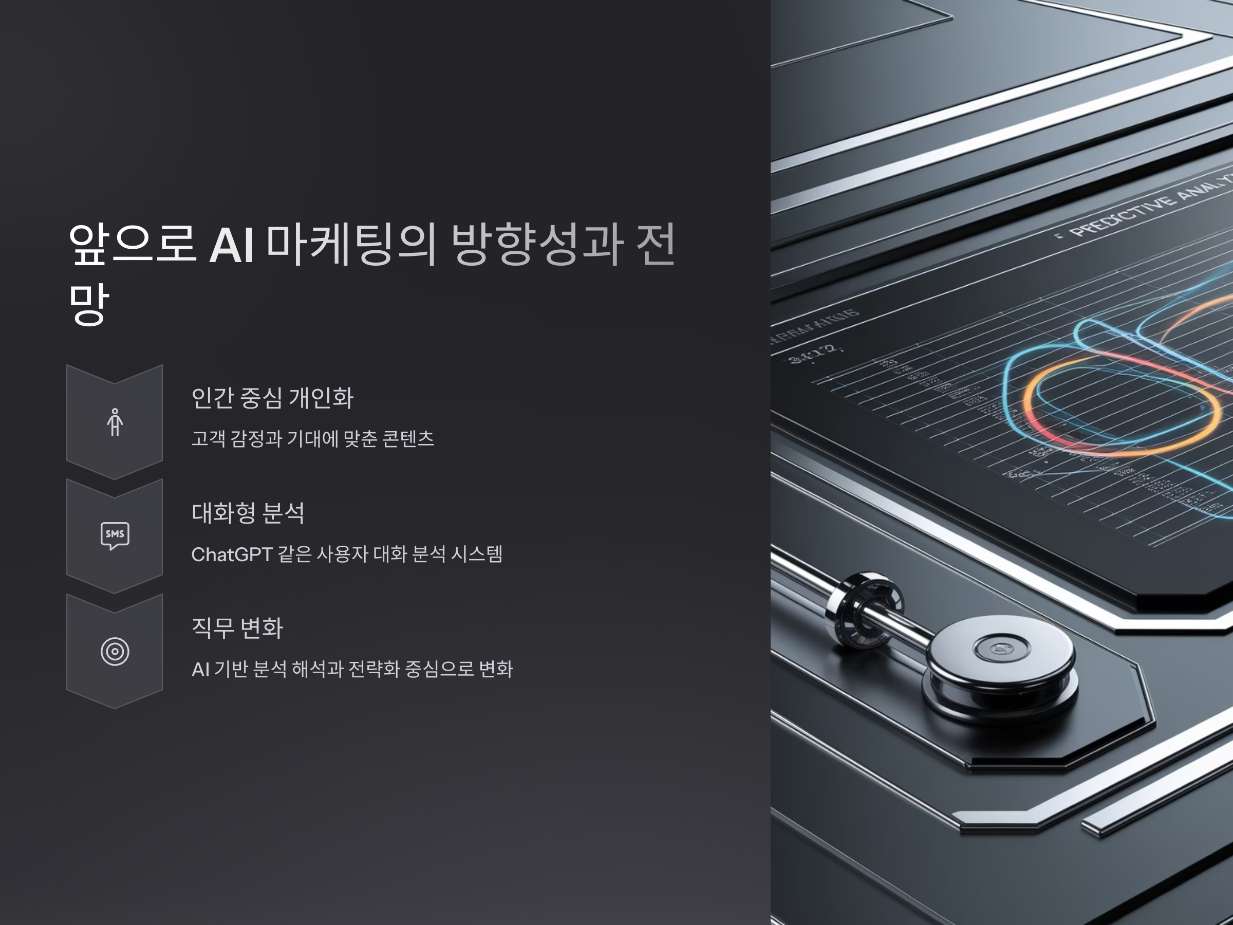 AI는 점점 인간 중심의 '개인화'에 초점을 맞추고 있습니다. 앞으로는 고객이 어떤 검색어를 입력하느냐보다 무엇을 느끼고 기대하느냐에 따라 콘텐츠가 자동 조정되는 시대가 도래합니다. ChatGPT처럼 사용자 대화를 분석하여 그에 맞는 콘텐츠를 제공하는 시스템은 기본이 될 것이며, 향후 마케팅 직무 자체가 AI 기반 분석을 해석하고 전략화하는 방향으로 바뀔 것입니다.