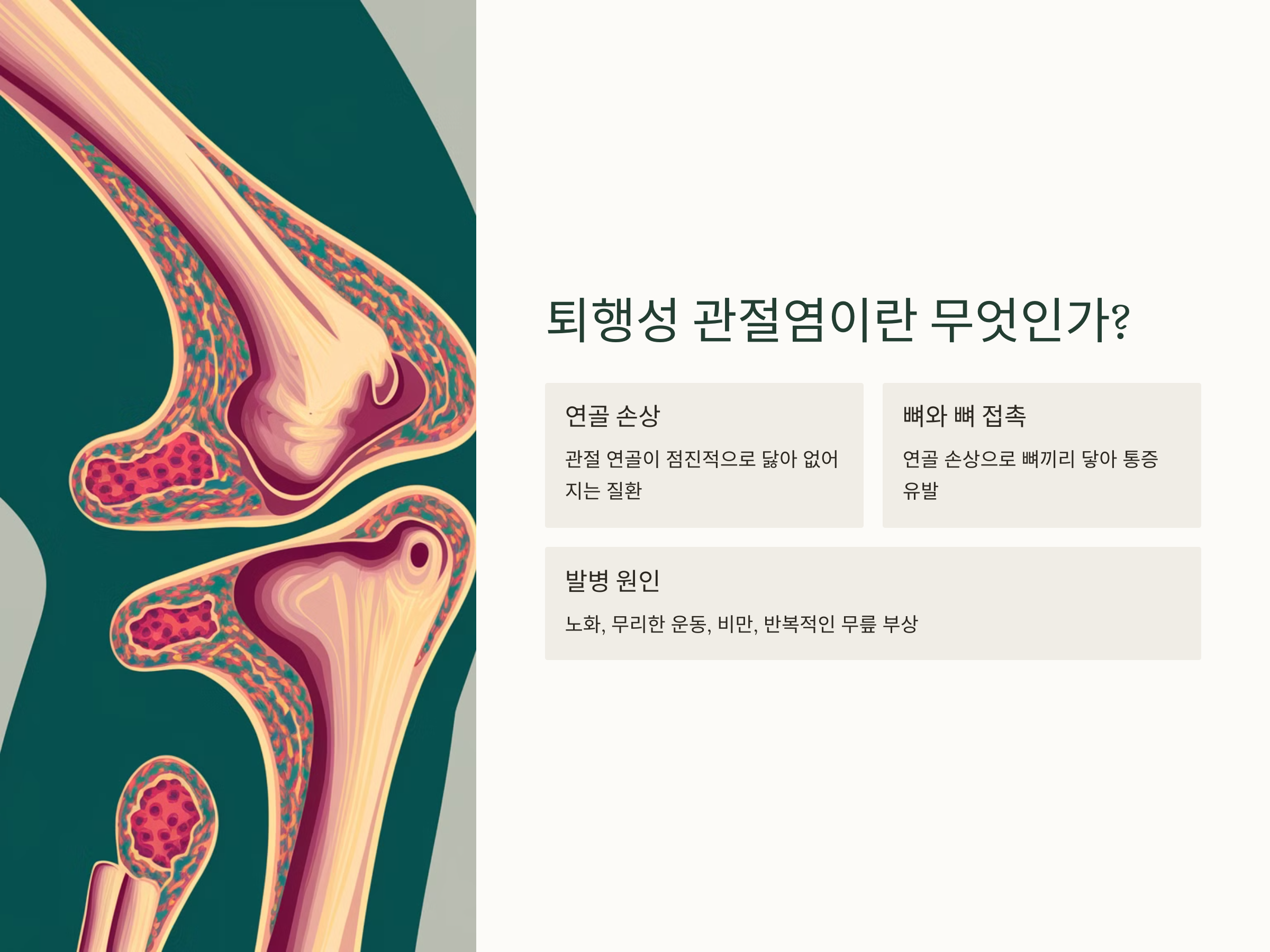 퇴행성 관절염으로 인한 무릎 통증은 많은 사람들이 고통을 겪는 문제입니다. 특히 나이가 들수록 그 증상이 심해지며 일상생활에서의 불편을 초래하게 됩니다. 이 글에서는 퇴행성 관절염이 무엇인지, 왜 무릎 통증을 유발하는지, 그리고 이를 해결할 수 있는 방법들에 대해 다뤄보겠습니다. 통증을 줄이고, 삶의 질을 개선할 수 있는 다양한 해결책들을 알아보세요.