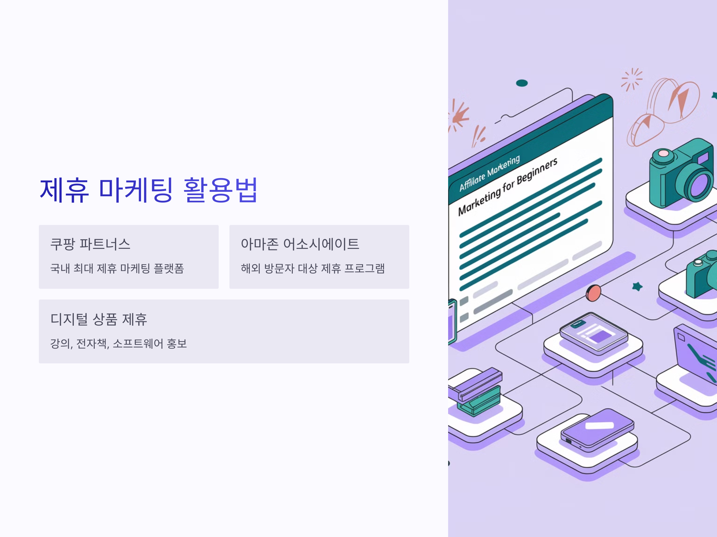 애드센스 외에도 제휴 마케팅(Affiliate Marketing)을 활용하면 추가적인 수익을 창출할 수 있습니다.
