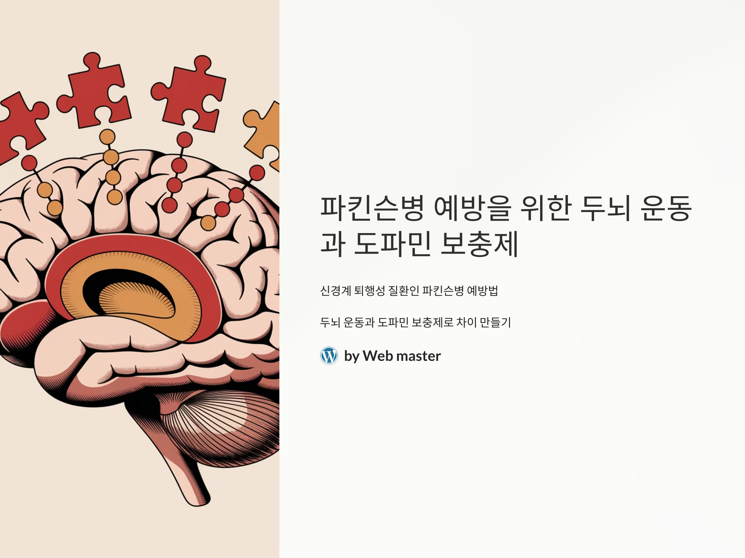 파킨슨병은 완치가 어려운 질병이지만, 예방은 가능합니다. 두뇌 운동과 도파민 보충제를 통해 뇌 건강을 지키고, 파킨슨병의 발병을 지연시킬 수 있습니다. 또한, 꾸준한 실천을 통해 뇌의 기능을 향상시키고, 신경계 퇴행을 방지할 수 있습니다. 예방은 언제나 치료보다 더 중요하므로, 오늘부터 꾸준히 실천하여 건강한 삶을 유지하세요!