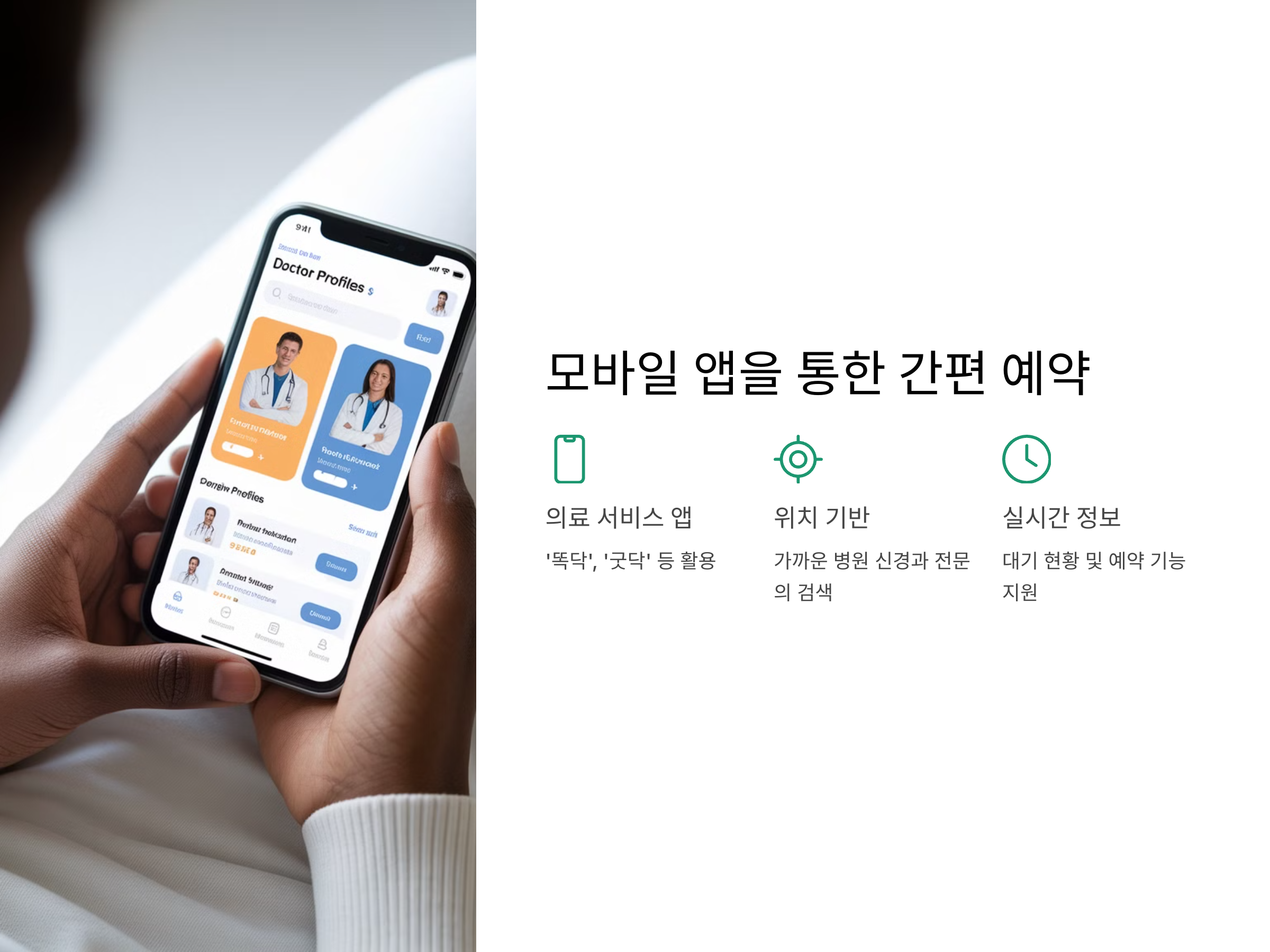 스마트폰 앱을 활용하면 더욱 손쉽게 진료 예약이 가능합니다. '똑닥', '굿닥'과 같은 의료 서비스 앱은 전국의 병원 정보를 제공하며, 실시간 대기 현황 및 예약 기능을 지원합니다. 이러한 앱을 통해 가까운 병원의 신경과 전문의를 찾아 바로 예약할 수 있습니다. citeturn0search10