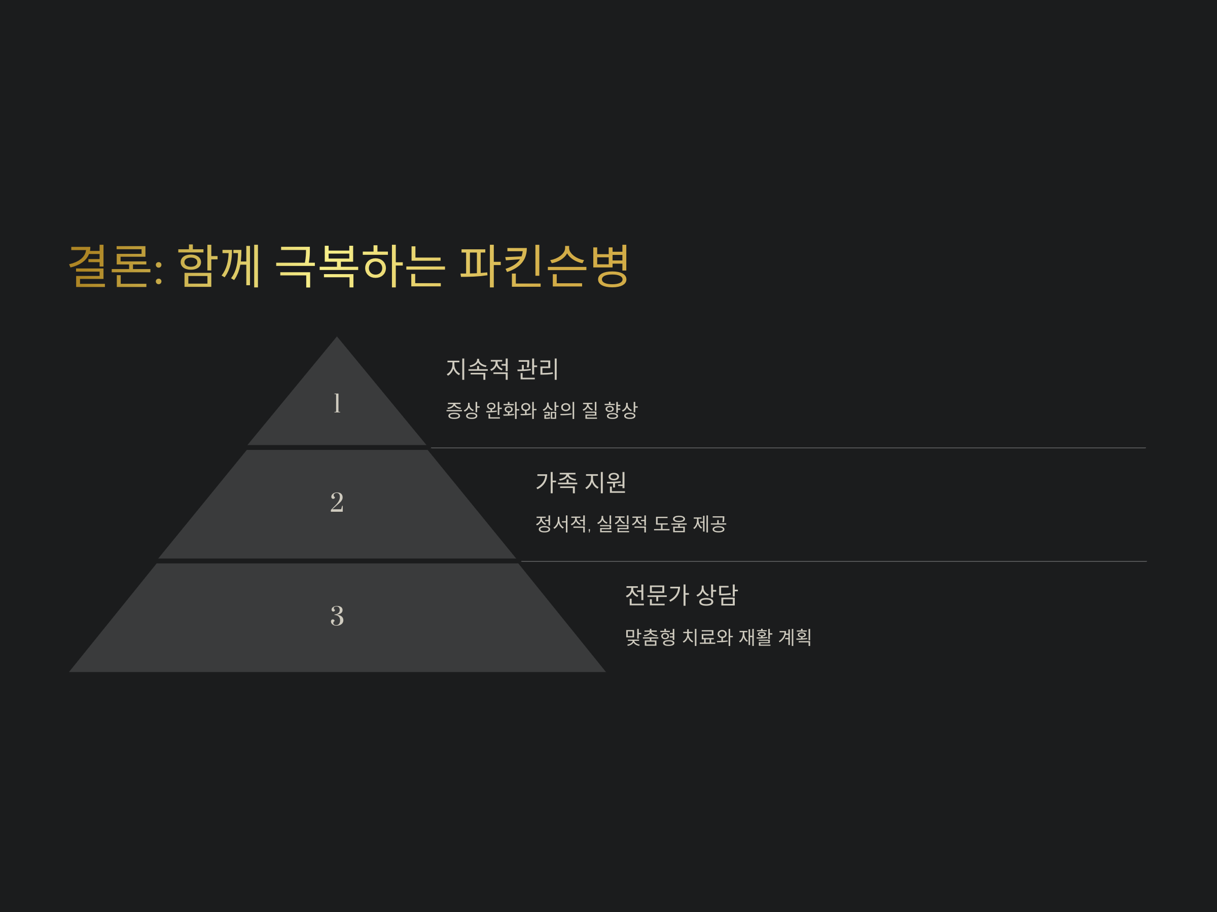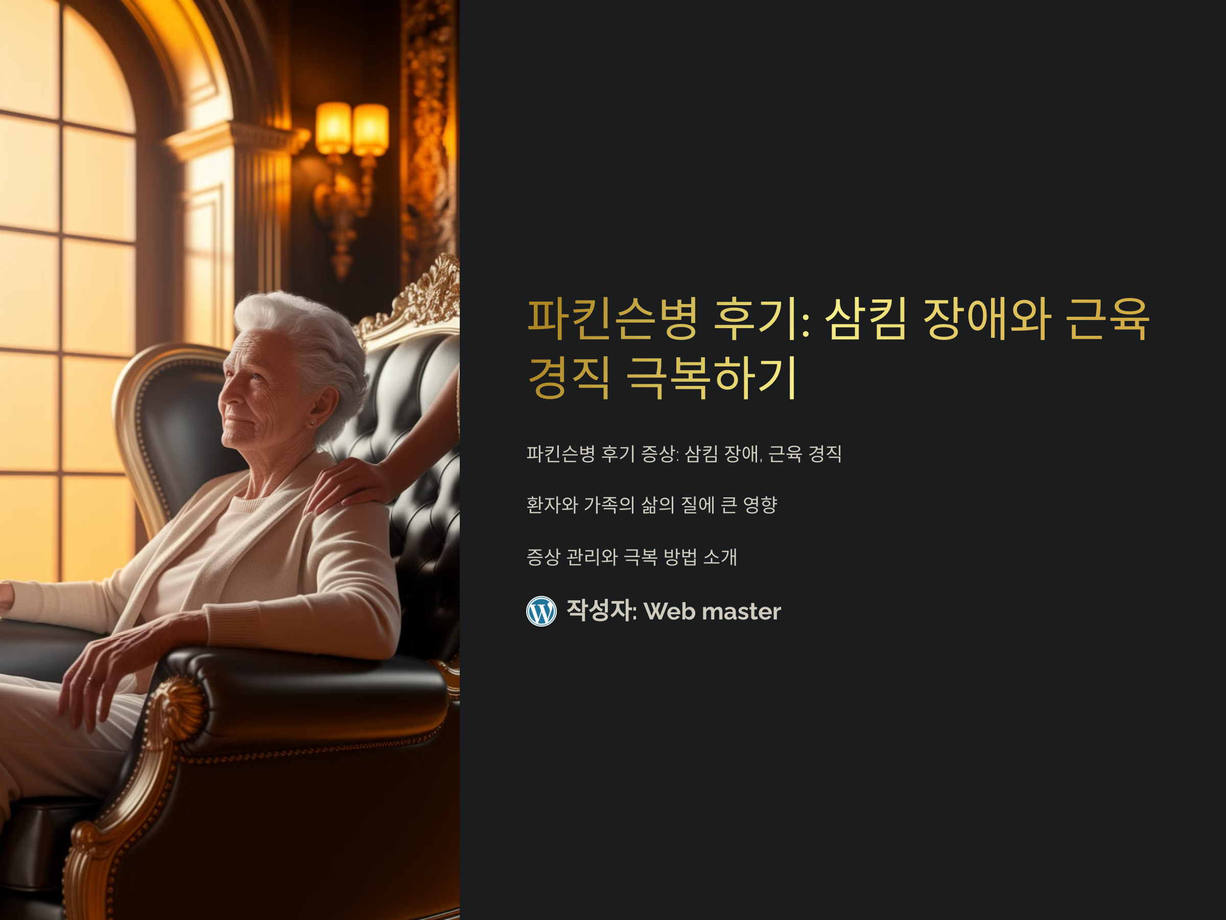 파킨슨병 후기 단계에서 나타나는 삼킴 장애와 근육 경직은 환자의 삶의 질에 큰 영향을 미칩니다. 그러나 적절한 평가와 치료, 재활 운동, 그리고 가족의 지원을 통해 이러한 증상들을 효과적으로 관리할 수 있습니다. 환자와 가족 모두가 함께 노력하여 보다 나은 삶을 영위할 수 있도록 지속적인 관심과 노력이 필요합니다.