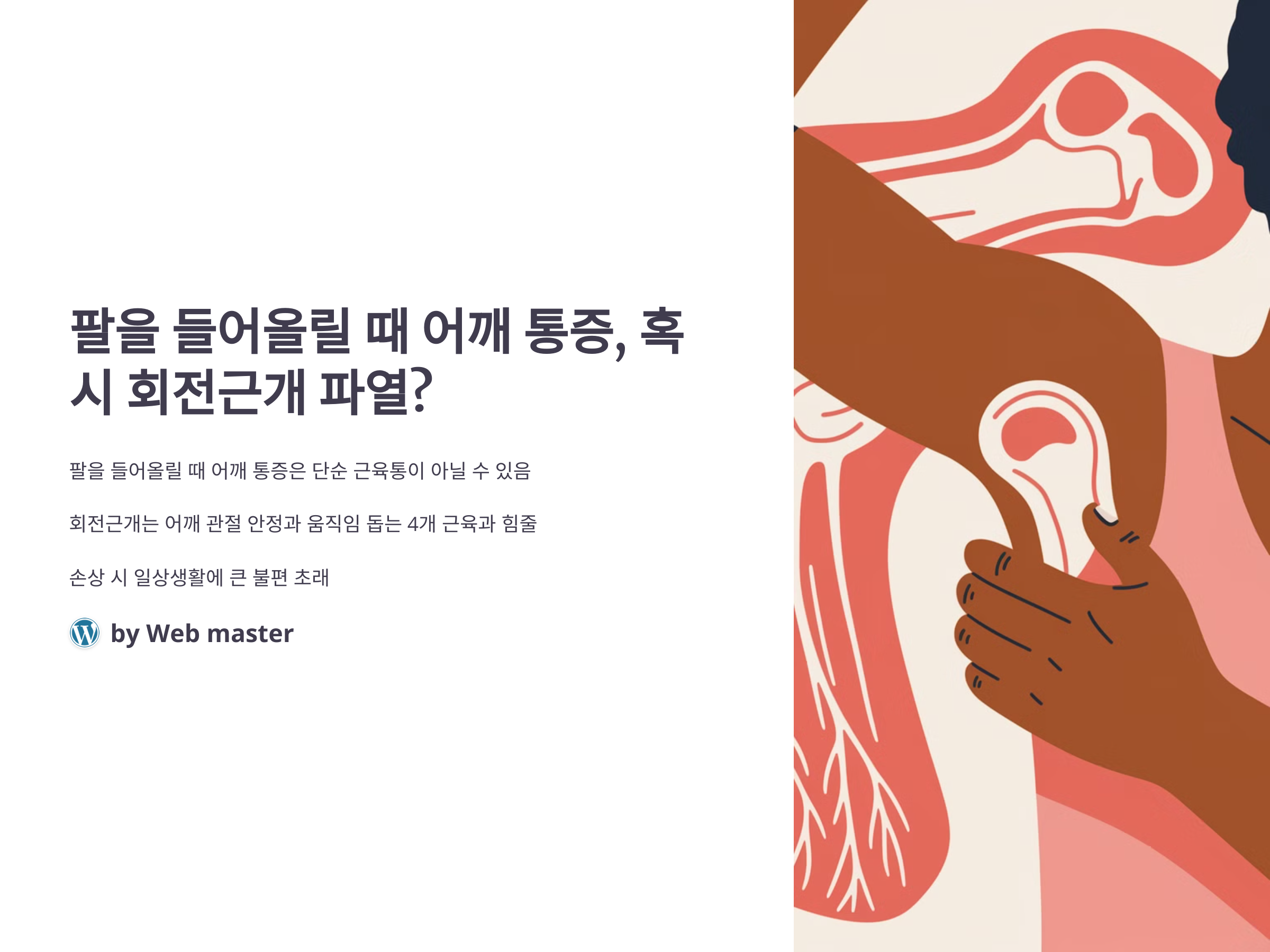 팔을 들어올릴 때 어깨에 통증을 느끼는 경우, 단순한 근육통이 아닌 회전근개 파열을 의심해볼 필요가 있습니다. 회전근개는 어깨 관절을 안정시키고 움직임을 돕는 네 개의 근육과 힘줄로 이루어져 있습니다. 이러한 구조물이 손상되면 일상생활에서 큰 불편을 겪을 수 있습니다.