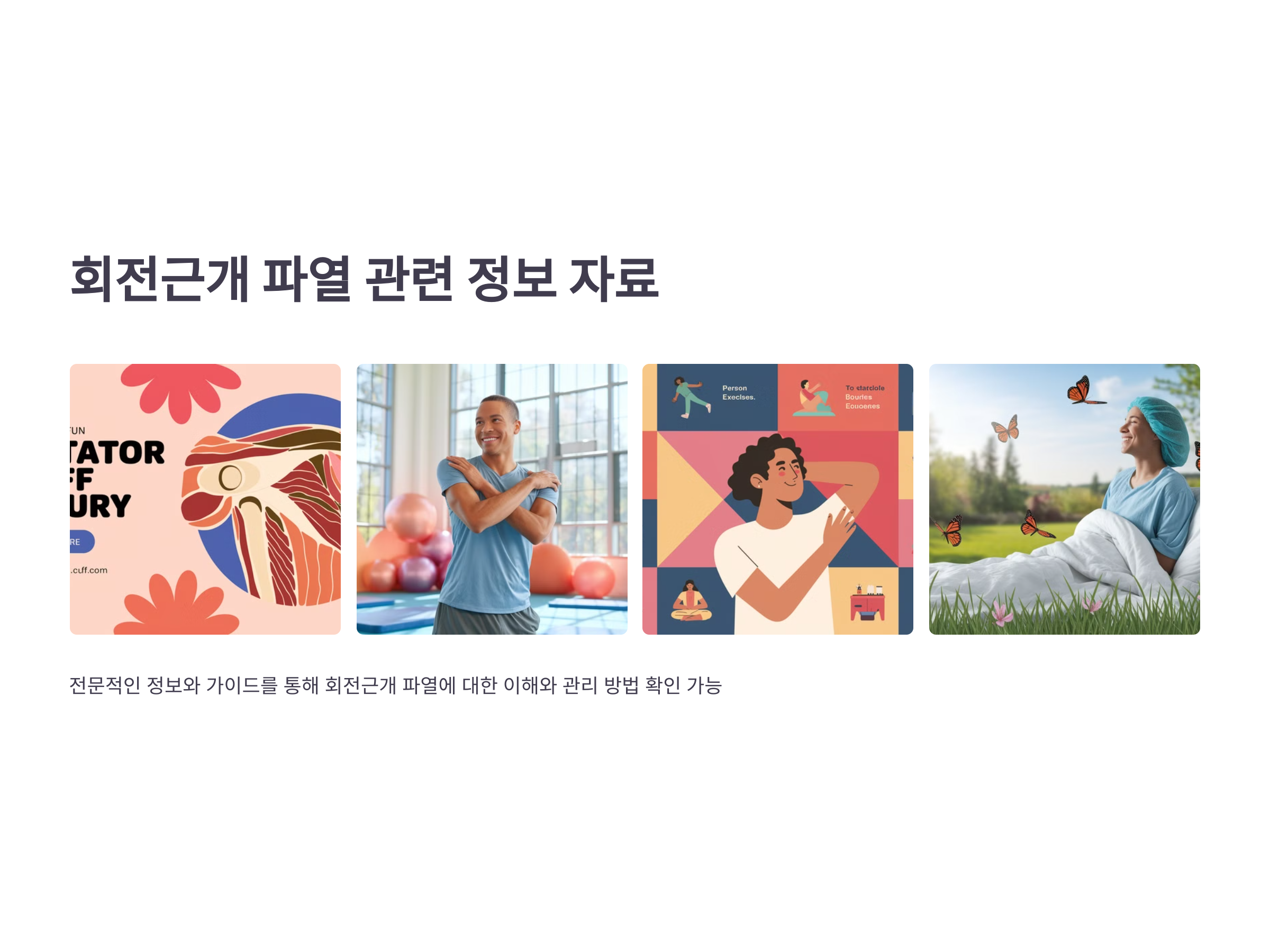 회전근개 파열에 대한 자세한 정보 확인하기 어깨 통증 관리 및 예방 가이드 물리치료를 통한 어깨 재활 프로그램 회전근개 파열 수술 후 재활 과정 알아보기 어깨 건강을 위한 운동 및 스트레칭 방법
