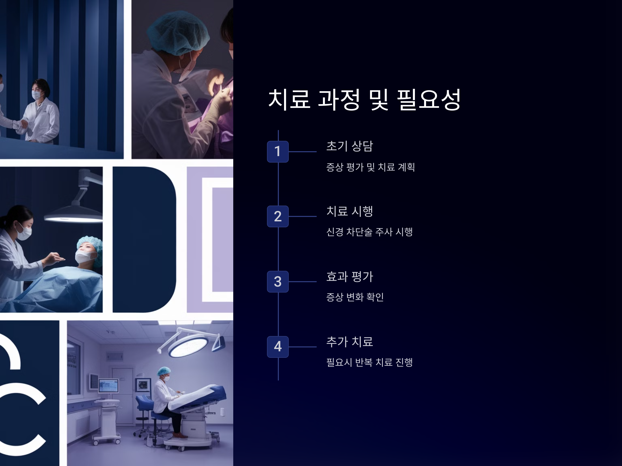 이와 관련해 중요한 점은, 신경 차단술이 건강보험의 급여 대상에 포함되기 위해서는 전문 의료기관에서 시행되어야 하며, 수술적인 치료와는 달리 비교적 비침습적인 방법으로 환자의 상태에 맞는 치료가 필요하다는 점입니다. 다만, 급여 적용 기준은 의료기관에 따라 다소 차이가 있을 수 있으며, 이를 위해 의료진과의 상담이 필수적입니다.