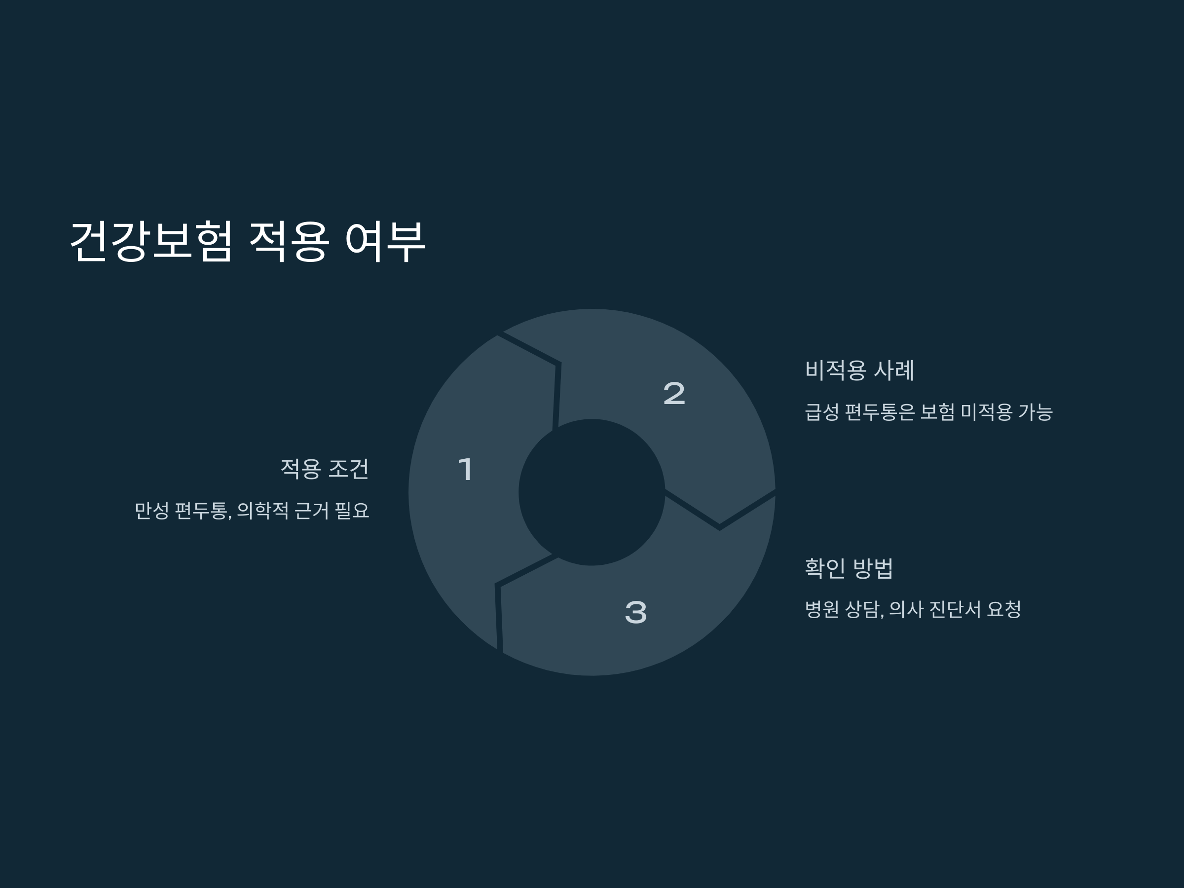 편두통 신경 차단술이 건강보험 적용 대상이 되는지 여부는 환자의 상태에 따라 다릅니다. 일반적으로 만성 편두통이나 다른 의학적 근거가 있는 경우에만 건강보험이 적용됩니다. 급성 편두통에 대해서는 보험이 적용되지 않을 수 있습니다.