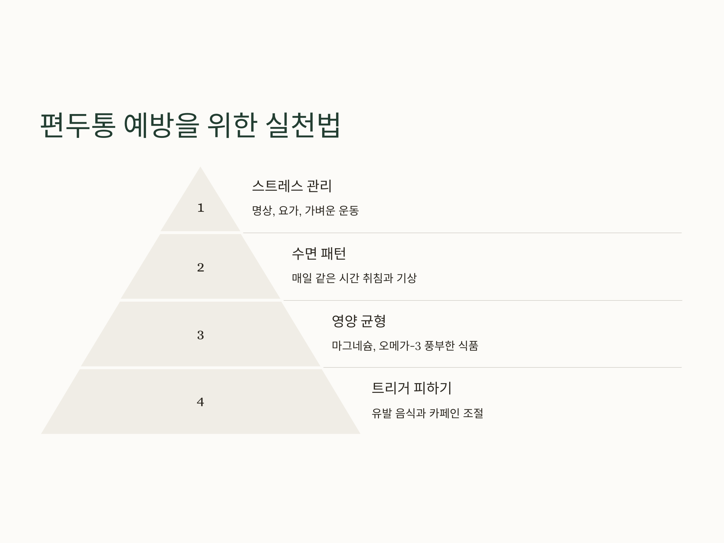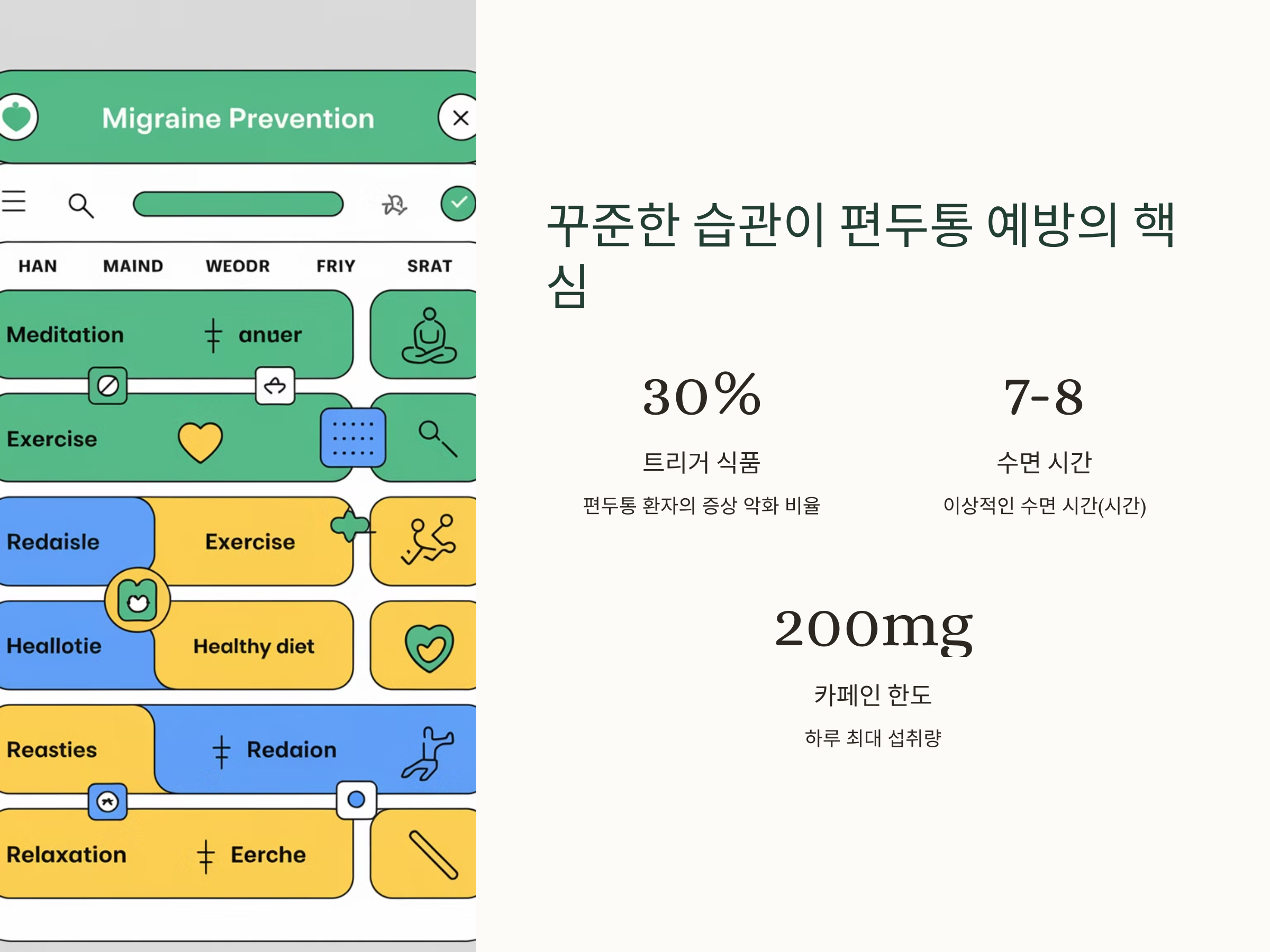 마지막으로, 편두통 예방을 위해 실천할 수 있는 핵심 방법들을 정리해보겠습니다.