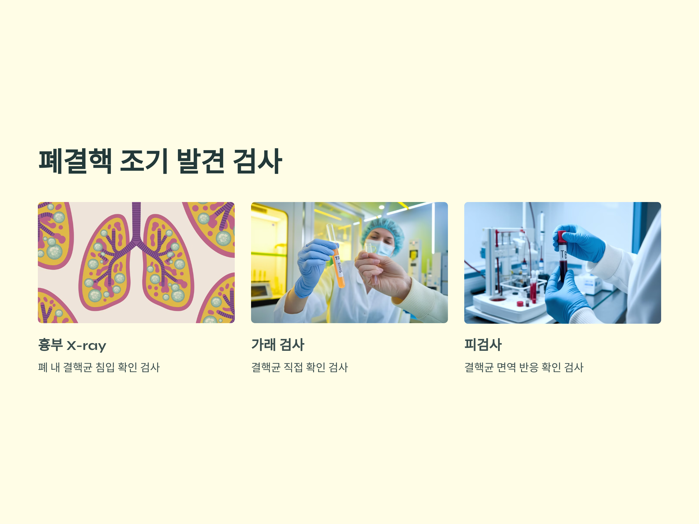 - 결핵 검사: 결핵은 초기에는 증상이 경미할 수 있으므로 정기적인 결핵 검사를 받는 것이 중요합니다.