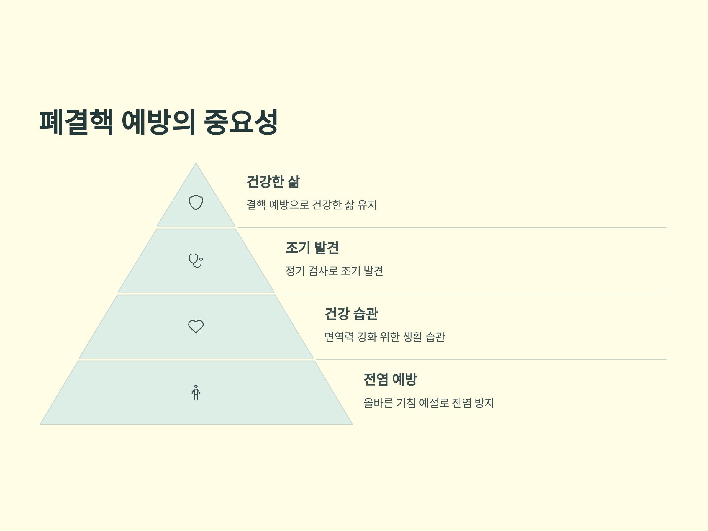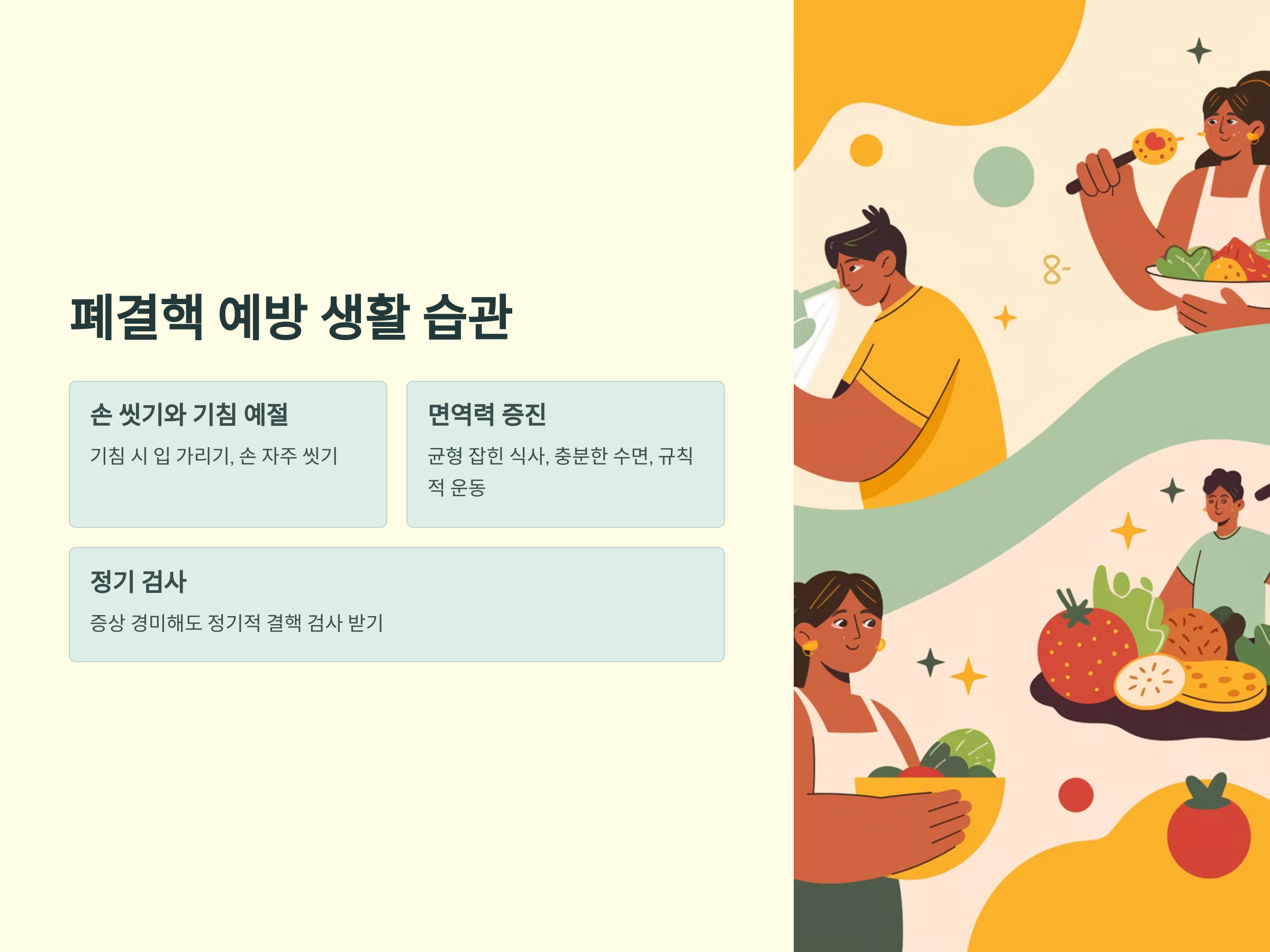 폐결핵을 예방하기 위한 생활 습관도 매우 중요합니다. 결핵은 공기 중으로 전파되는 감염병이기 때문에 건강한 생활습관을 유지하는 것이 중요합니다.