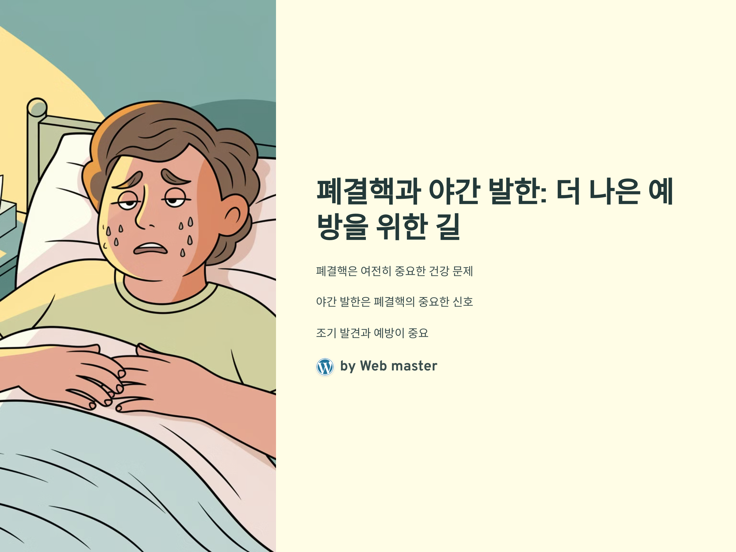폐결핵은 우리나라에서 여전히 중요한 건강 문제 중 하나입니다. 결핵은 기침, 가래, 체중 감소 등 다양한 증상을 동반할 수 있으며, 그 중 하나인 야간 발한은 폐결핵의 중요한 신호일 수 있습니다. 특히, 밤에 발생하는 과도한 발한은 결핵의 대표적인 증상 중 하나로 알려져 있습니다. 그러나 많은 사람들이 이를 단순한 증상으로 오해하거나 무시하는 경우가 많아 조기 발견이 어려운 경우가 많습니다.