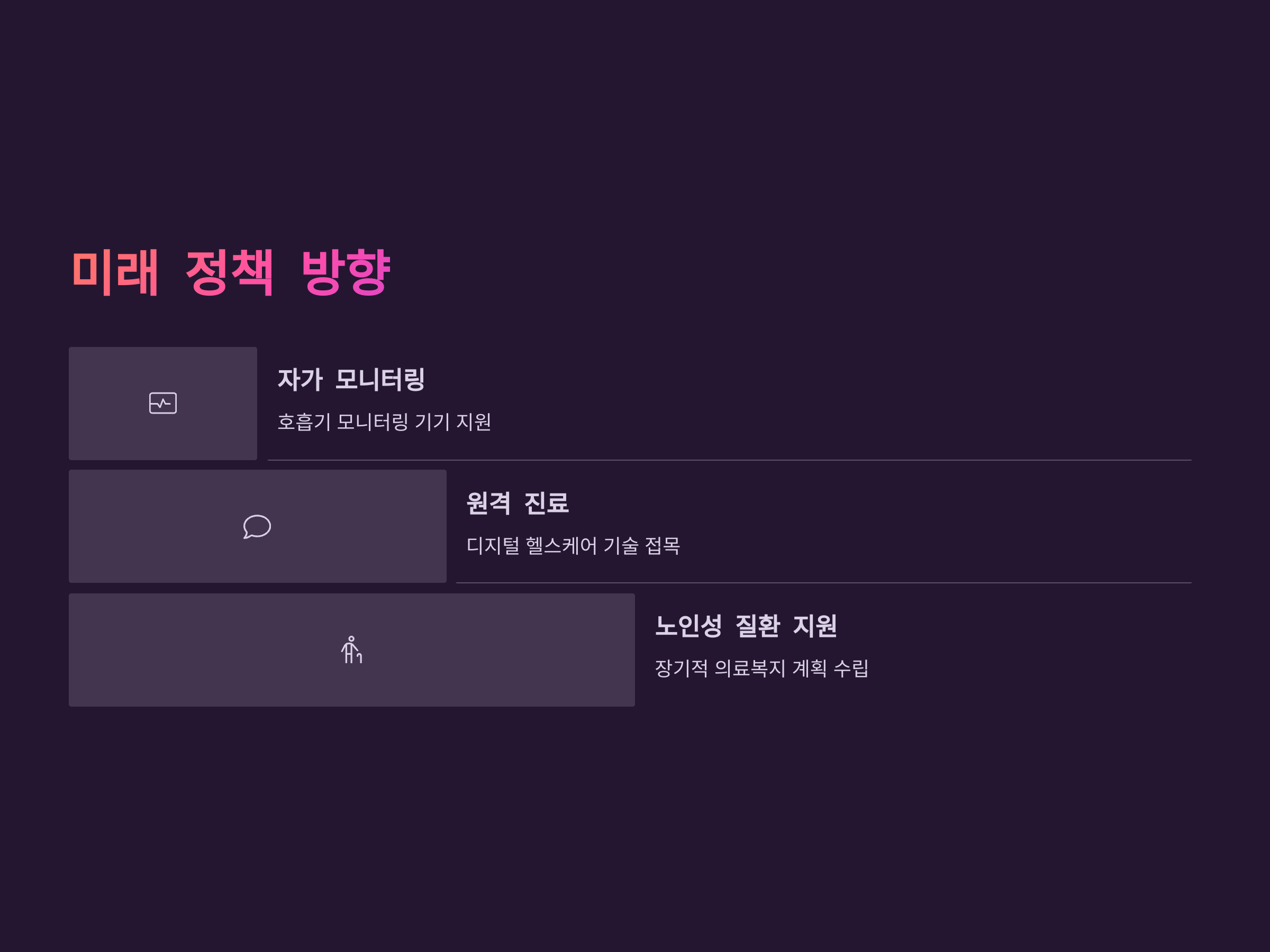 정부는 이번 산소치료 건강보험 정책 확대를 시작으로, 앞으로도 호흡기 질환자들의 의료 접근성을 높이기 위한 정책을 지속적으로 시행할 예정입니다. 예를 들어, 자가 호흡기 모니터링 기기, 원격 진료 플랫폼 연계 등 디지털 헬스케어 기술이 접목된 지원 사업도 검토되고 있습니다.