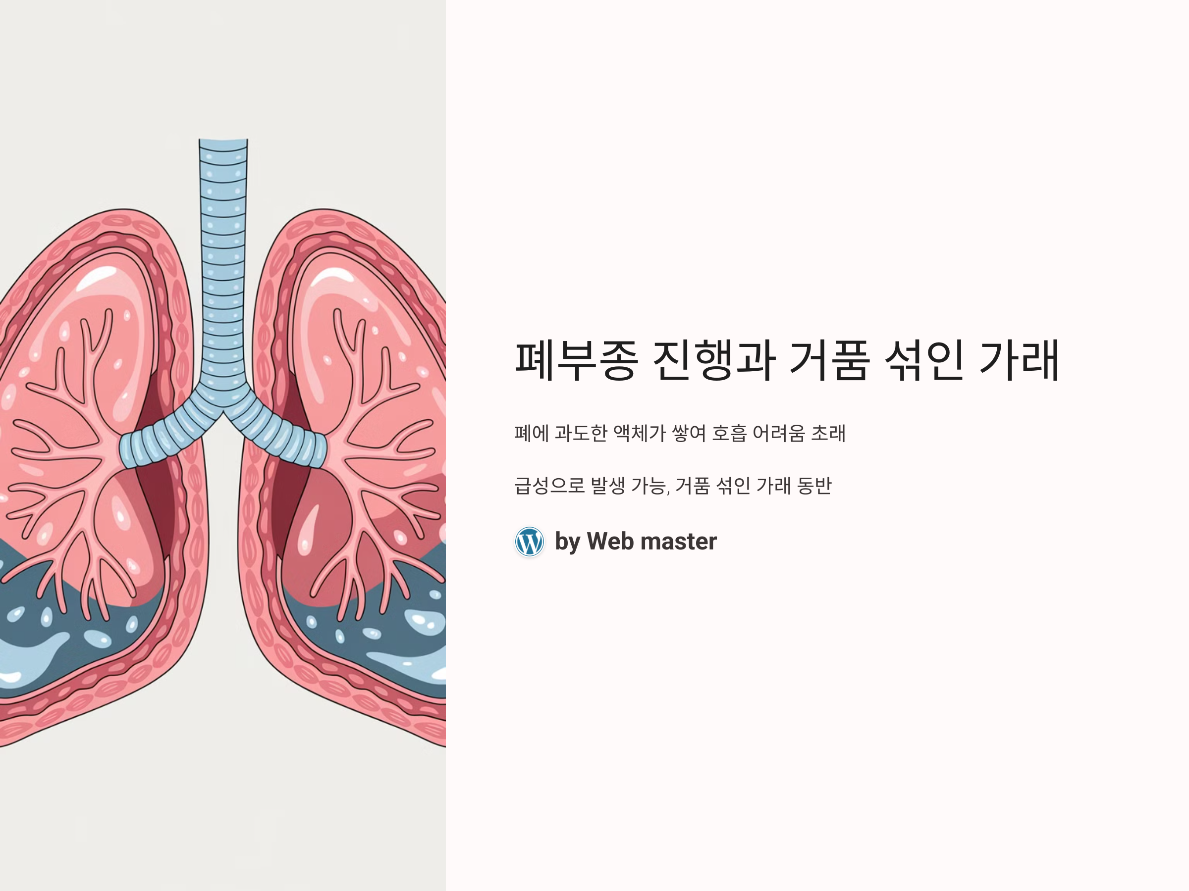 폐부종은 폐에 과도한 액체가 쌓여 호흡을 어렵게 만드는 질환입니다. 이 질환은 급성으로 발생할 수 있으며, 거품 섞인 가래와 같은 증상을 동반할 수 있습니다. 폐부종이 진행되면서 거품이 섞인 가래가 나오는 경우, 이는 폐에 액체가 과도하게 축적되어 있는 상태를 나타냅니다. 이 글에서는 폐부종 진행 시 거품 섞인 가래가 왜 발생하는지, 이를 어떻게 대처해야 할지에 대해 자세히 알아보겠습니다.