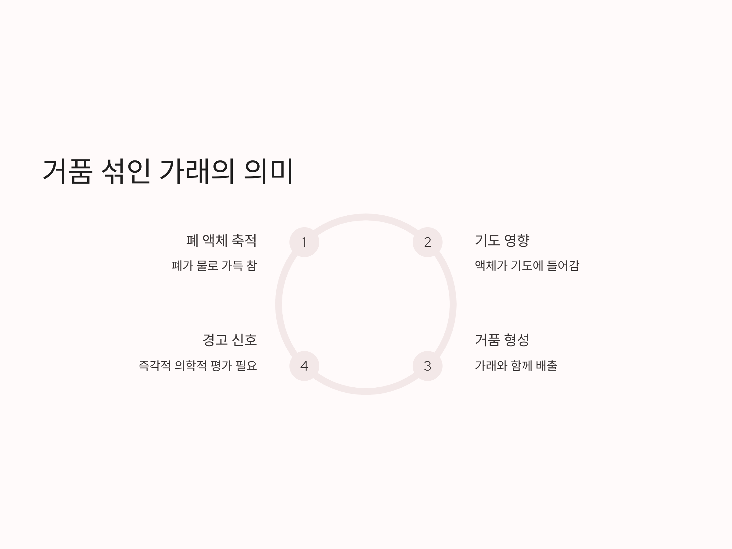 거품 섞인 가래는 폐부종 환자에서 흔히 나타나는 증상으로, 이는 폐에 축적된 액체가 기도에 영향을 미쳐 발생합니다. 액체가 기도에 들어가면서 거품을 일으키고, 이를 통해 가래가 배출됩니다. 가래가 거품을 포함하고 있다는 것은 폐가 물로 가득 차 있다는 경고 신호로 볼 수 있습니다. 이는 즉각적인 의학적 평가와 치료가 필요함을 의미합니다.