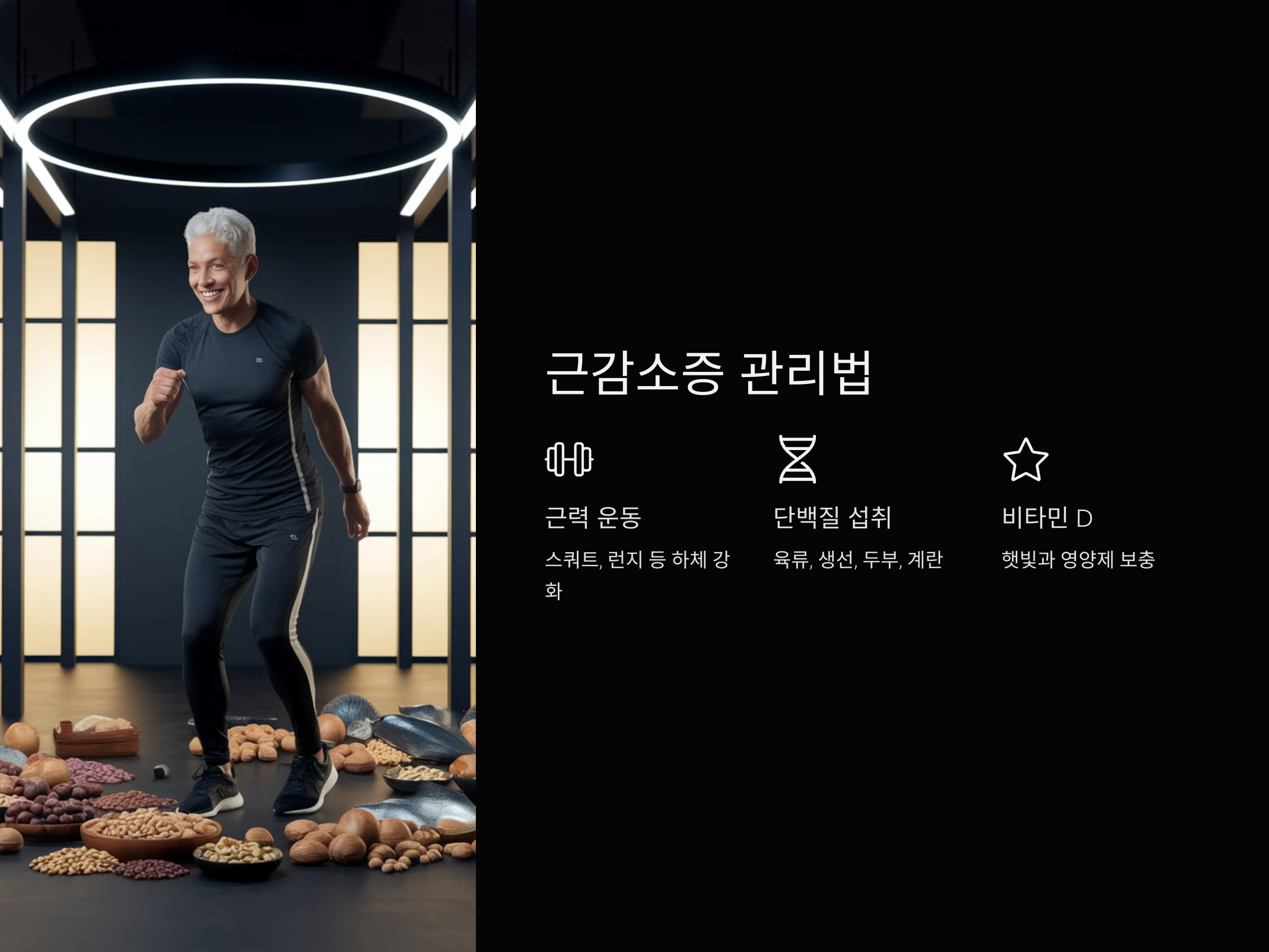 - 규칙적인 운동: 특히 다리 근육을 강화하는 운동(걷기, 자전거 타기 등) 수행