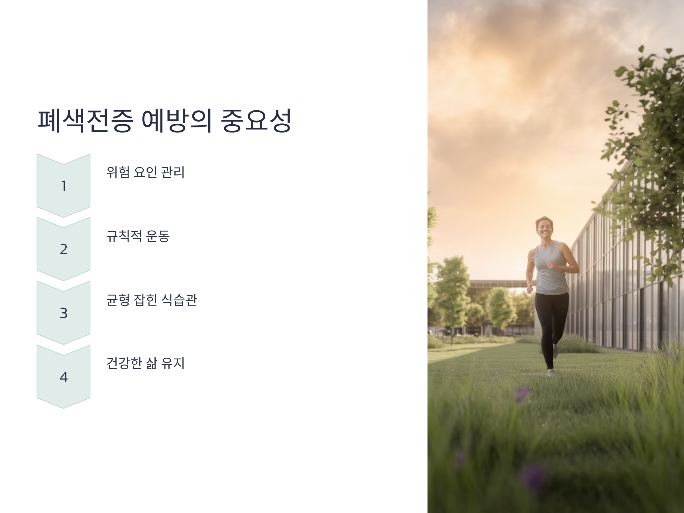 폐색전증은 심각한 건강 문제로, 장기간 침상 안정이나 비만과 같은 위험 요인을 관리하는 것이 중요합니다. 규칙적인 운동, 균형 잡힌 식습관, 스트레스 관리 등을 통해 예방할 수 있습니다. 예방을 위한 노력은 작은 습관의 변화에서 시작되며, 이를 통해 건강한 삶을 유지할 수 있습니다.
