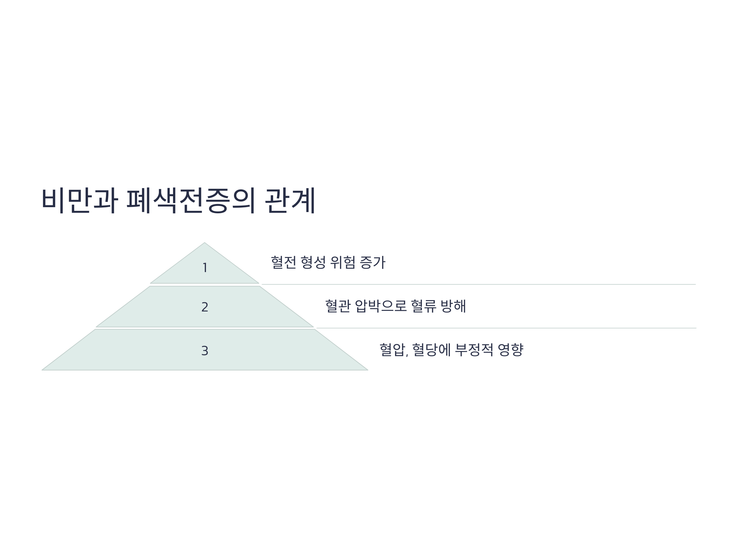 비만은 폐색전증의 중요한 원인 중 하나로, 과도한 지방이 신체에 축적되면 혈액 순환이 방해받고, 이는 혈전 형성의 위험을 높입니다. 체중이 많이 나갈수록 심장이 혈액을 펌프질하는 데 더 많은 에너지를 필요로 하고, 이로 인해 혈액 순환이 원활하지 않게 됩니다. 특히, 비만이 심한 경우, 체내 지방이 혈관을 압박하여 혈류가 원활하지 못하게 합니다.