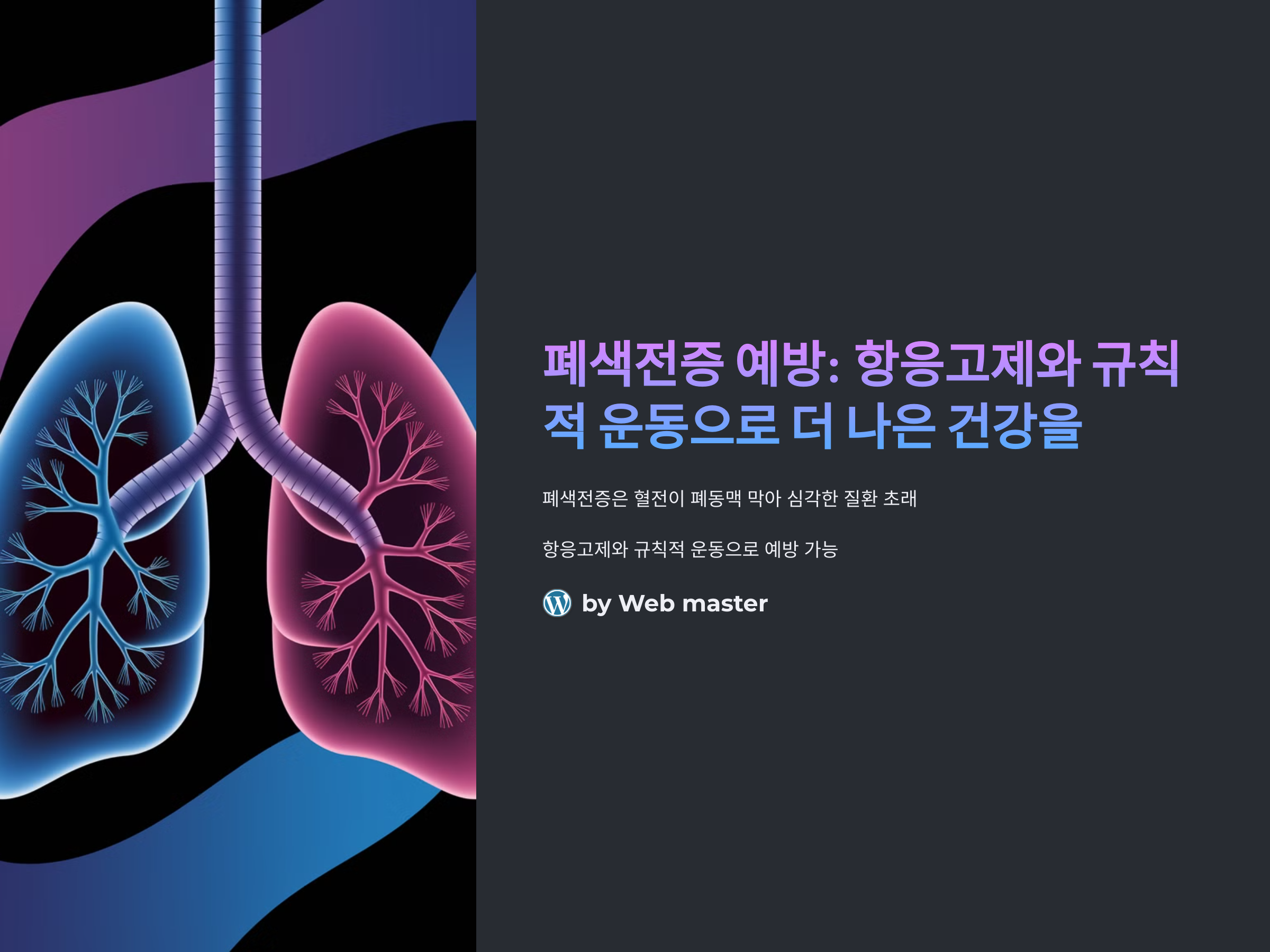 폐색전증은 혈전이 폐동맥을 막아 혈액 순환에 장애를 일으키는 심각한 질환입니다. 특히 고위험군에게는 이 질환이 급성으로 발생할 수 있어 예방이 중요합니다. 다행히도, 항응고제와 규칙적인 운동은 폐색전증을 예방하는 데 중요한 역할을 합니다. 이 글에서는 폐색전증 예방을 위한 항응고제의 중요성과 규칙적 운동의 효과를 자세히 알아보겠습니다.