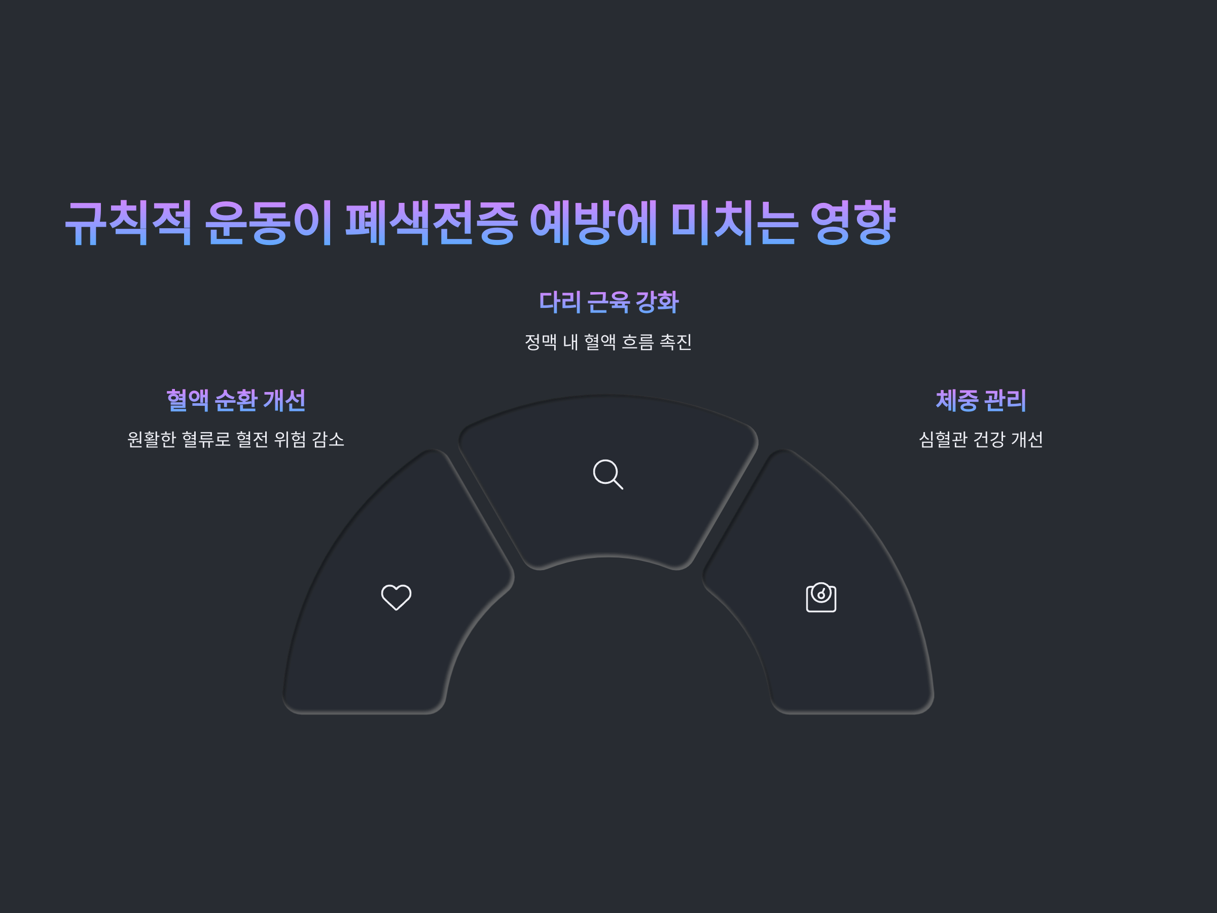 규칙적인 운동은 폐색전증 예방에 중요한 요소입니다. 운동을 통해 혈액 순환이 원활해지며, 혈전이 형성될 위험이 줄어듭니다. 특히 다리 근육을 자주 사용하면 정맥 내 혈액의 흐름이 촉진되어 혈전이 쌓일 위험을 감소시킬 수 있습니다.