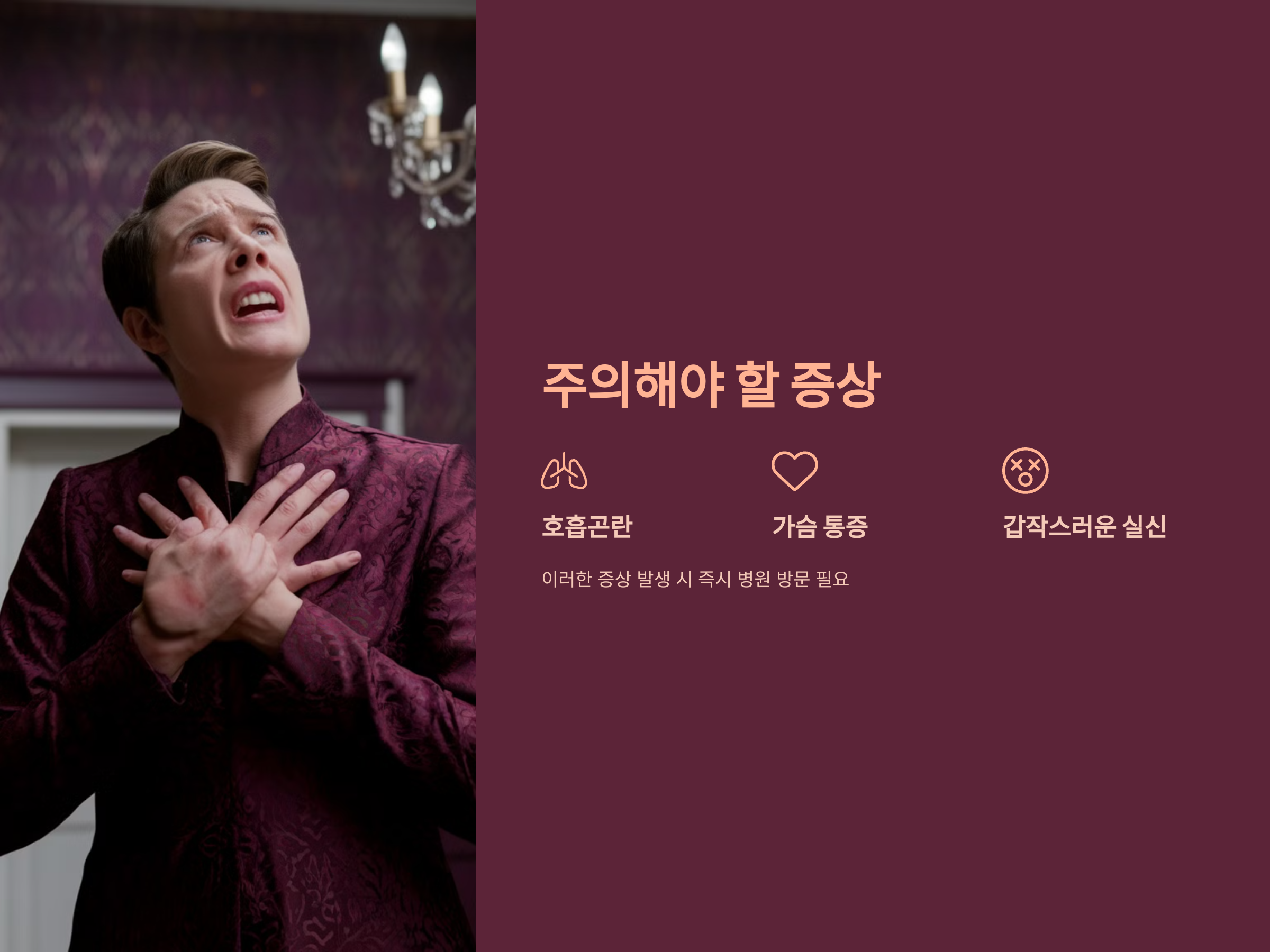 만약 호흡곤란, 가슴 통증, 갑작스러운 실신 등의 증상이 발생하면 즉시 병원을 방문하여 정밀 검사를 받아야 합니다.