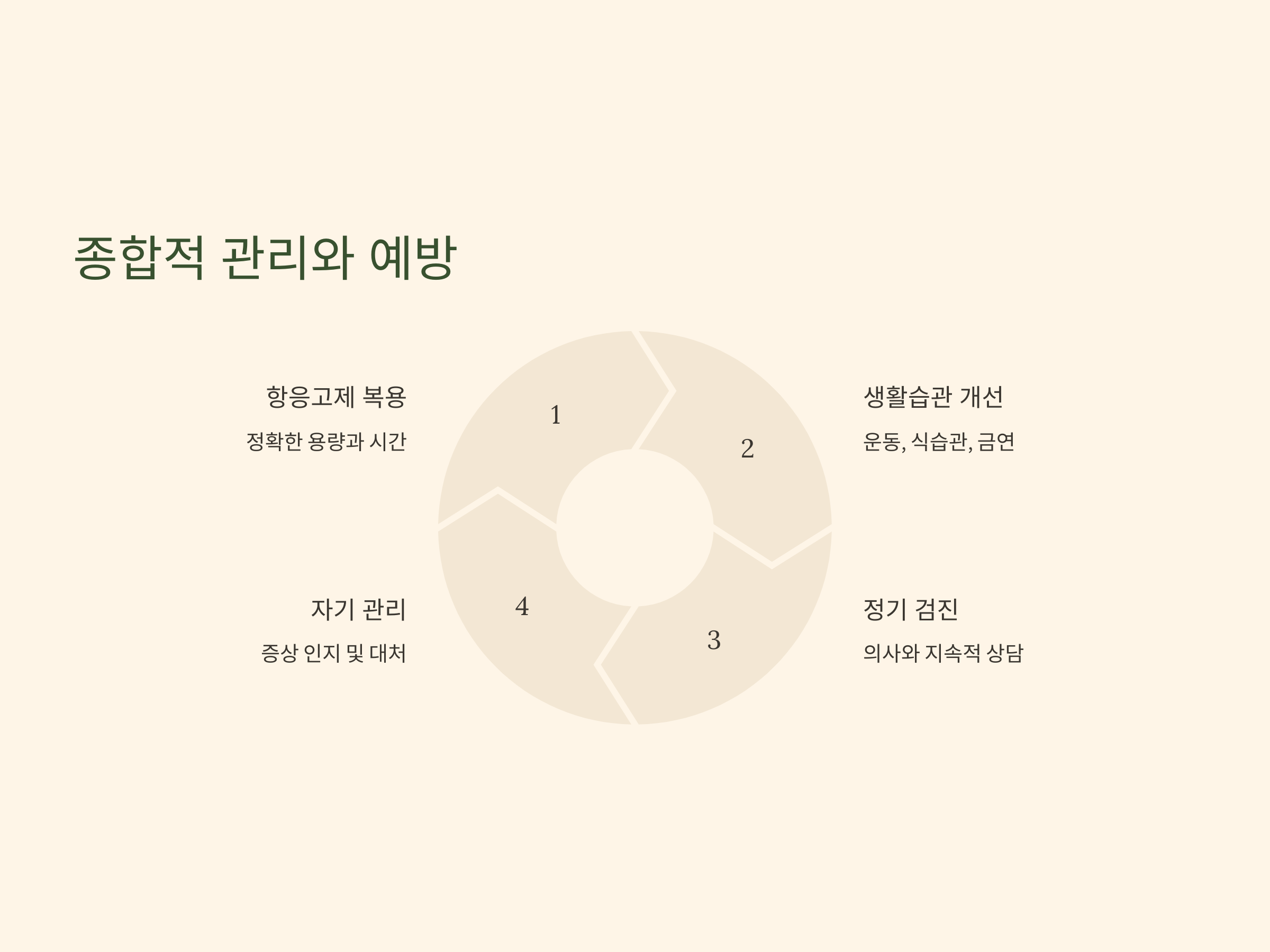 항응고제를 복용하는 환자는 반드시 의사의 지시에 따라 약물을 정확하게 복용해야 하며, 동시에 생활습관 개선에 지속적으로 신경 써야 합니다. 또한, 정기적인 병원 방문과 검사를 통해 상태를 체크하고, 필요 시 치료 계획을 조정해야 합니다.