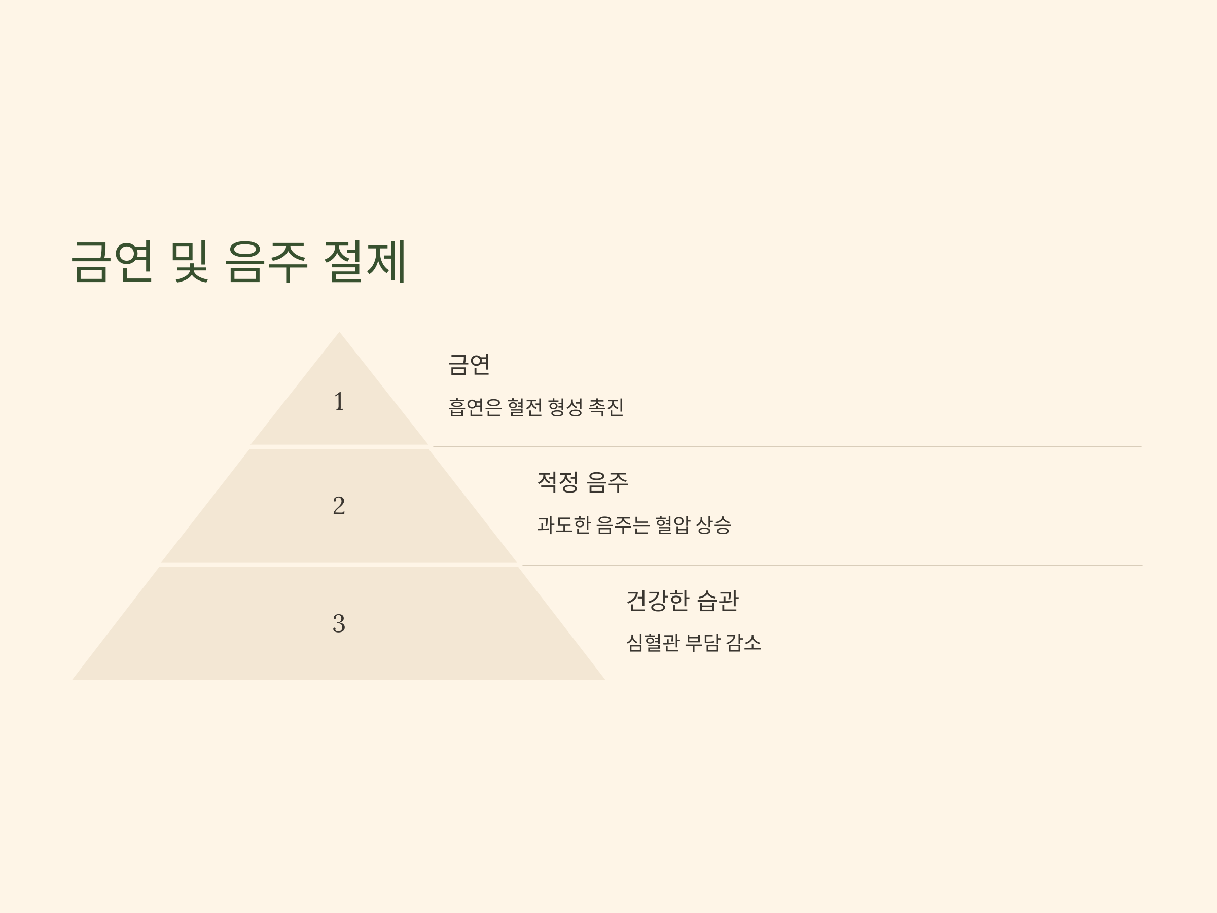 흡연은 혈액 순환을 방해하고, 혈전 형성을 촉진할 수 있습니다. 따라서 금연은 폐색전증 예방에 필수적인 조치입니다. 또한, 과도한 음주는 심혈관계에 부담을 주고, 혈압을 상승시켜 혈전 형성 위험을 높일 수 있습니다. 적정 음주를 유지하는 것이 중요합니다.