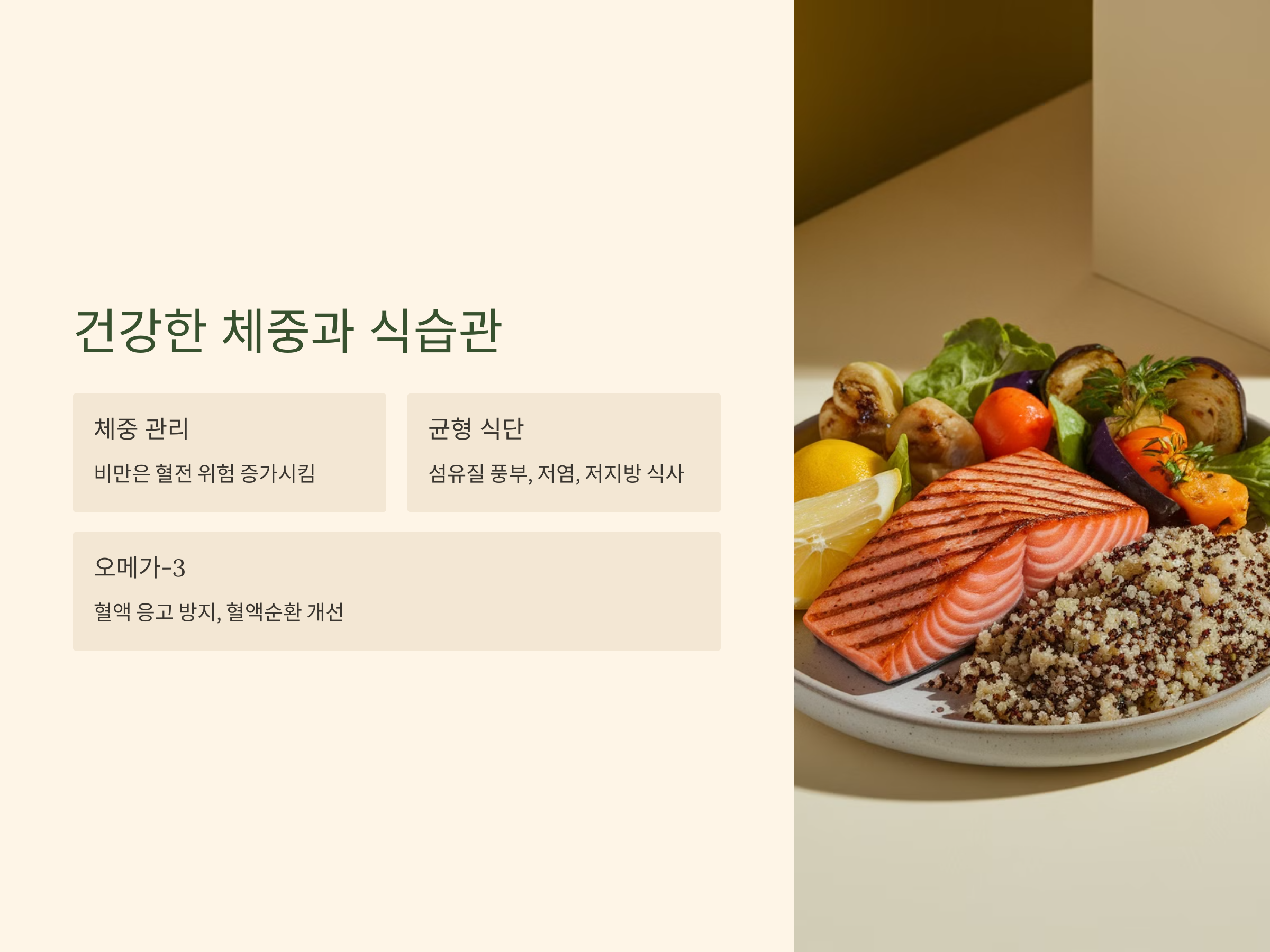 균형 잡힌 식사는 폐색전증 예방에 중요한 역할을 합니다. 특히, 염분이 많거나 고지방식이 지속되면 혈압이 상승하고, 동맥경화와 같은 심혈관계 질환을 초래할 수 있습니다. 또한, 적절한 양의 섬유질, 비타민 K, 오메가-3 지방산을 섭취하는 것이 좋습니다. 오메가-3 지방산은 혈액 응고를 방지하고, 혈액순환을 돕는 역할을 합니다. 또한, 항응고제를 복용 중이라면 비타민 K가 풍부한 음식을 과도하게 섭취하지 않도록 주의해야 합니다.