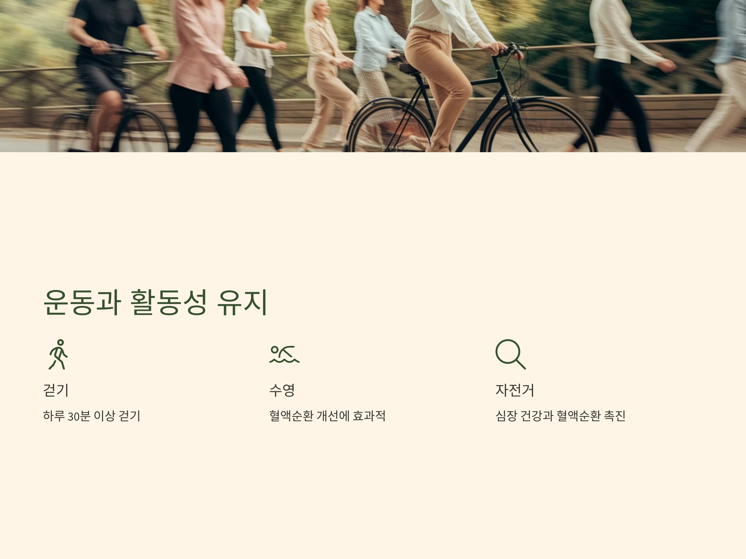 운동은 혈액순환을 촉진시키고, 혈전 형성 위험을 줄이는 데 큰 도움이 됩니다. 특히 장시간 앉아 있거나 누워 있는 경우 혈액의 흐름이 느려지고, 혈전이 형성될 가능성이 높아집니다. 따라서 규칙적인 운동이 필요합니다. 하루 30분 이상의 유산소 운동이 좋으며, 걷기, 자전거 타기, 수영 등은 심장 건강에도 좋고, 혈액 순환을 개선하는 데 도움이 됩니다.