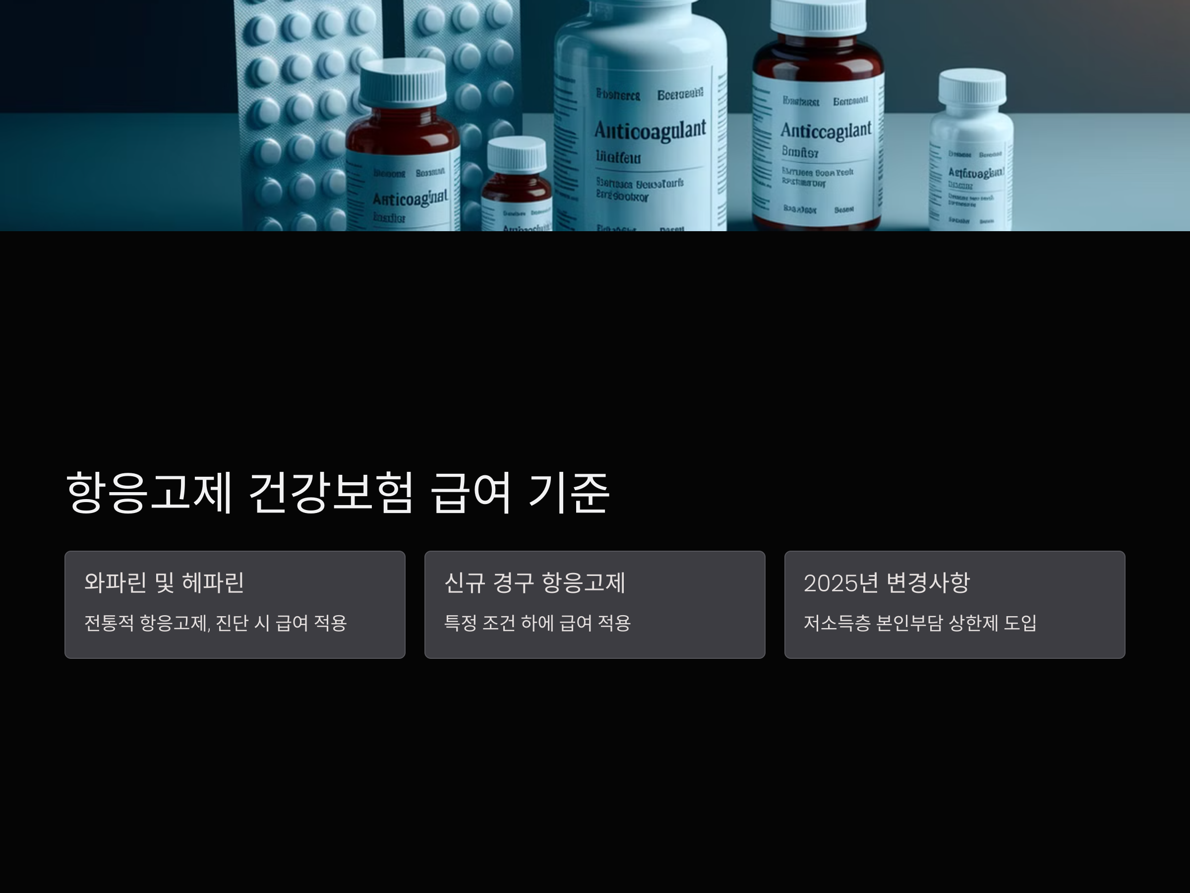 - 급여 기준 변경 사항: 2025년부터 저소득층 및 중증질환자를 위한 본인부담 상한제가 도입되어, 항응고제 복용에 따른 비용 부담이 크게 줄어들 예정입니다. citeturn0search8
