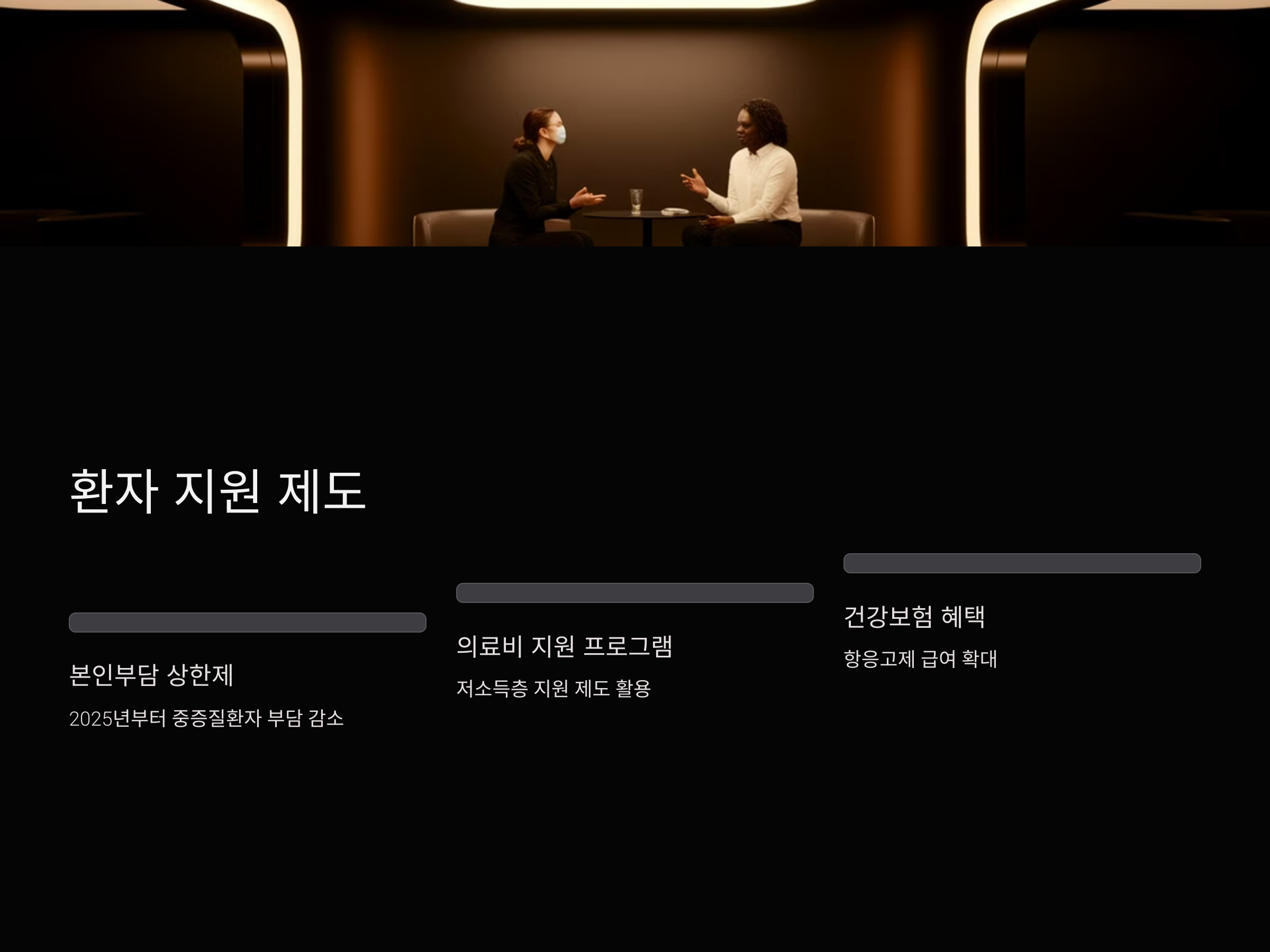 - 본인부담 상한제: 2025년부터 시행되는 본인부담 상한제를 통해 중증질환자의 의료비 부담이 크게 줄어들 예정입니다. citeturn0search8