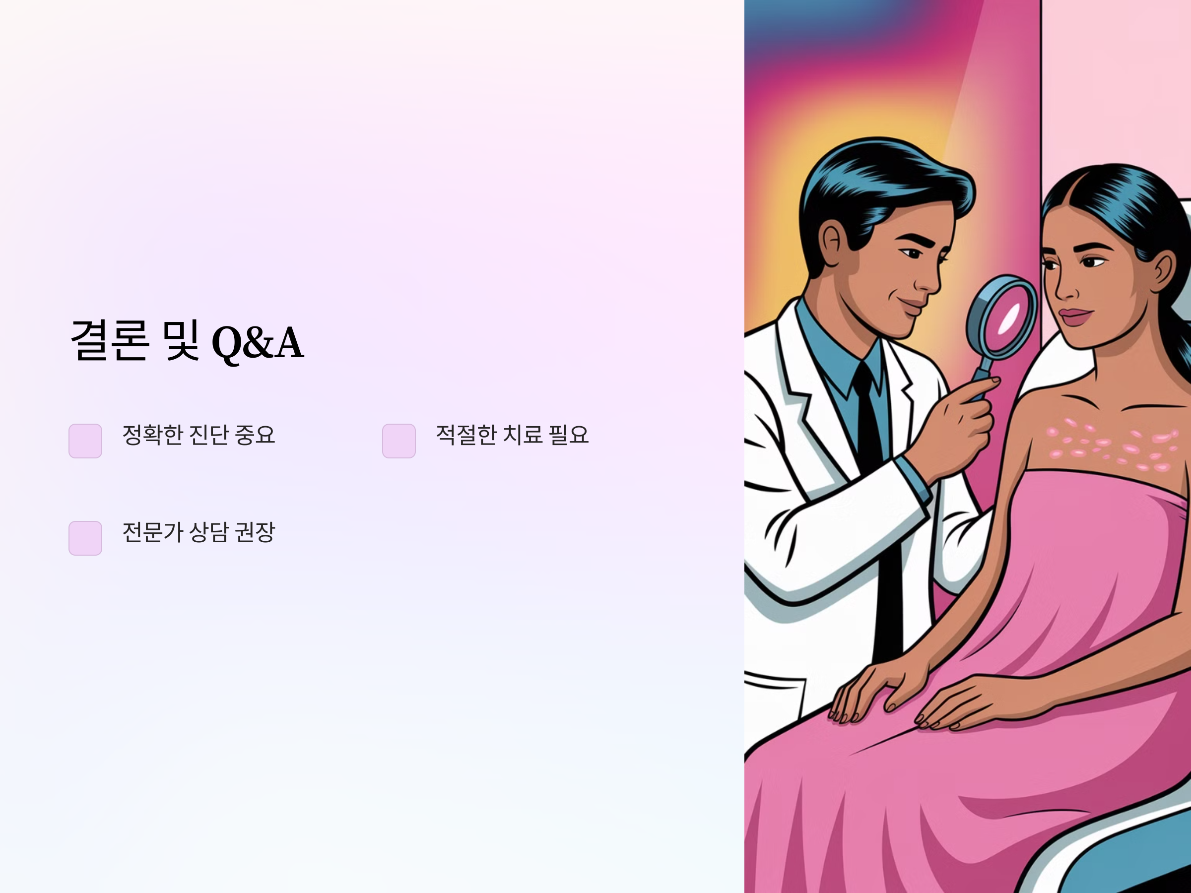 건선과 알레르기 피부염은 증상은 유사하지만, 그 원인과 치료법에서 차이가 있습니다. 증상이 발생했을 때, 정확한 진단을 통해 적절한 치료를 받는 것이 중요합니다. 알레르기 피부염은 주로 알레르겐을 피하고 치료하면 완화되지만, 건선은 장기적인 관리가 필요하므로 전문가의 조언을 받는 것이 좋습니다.