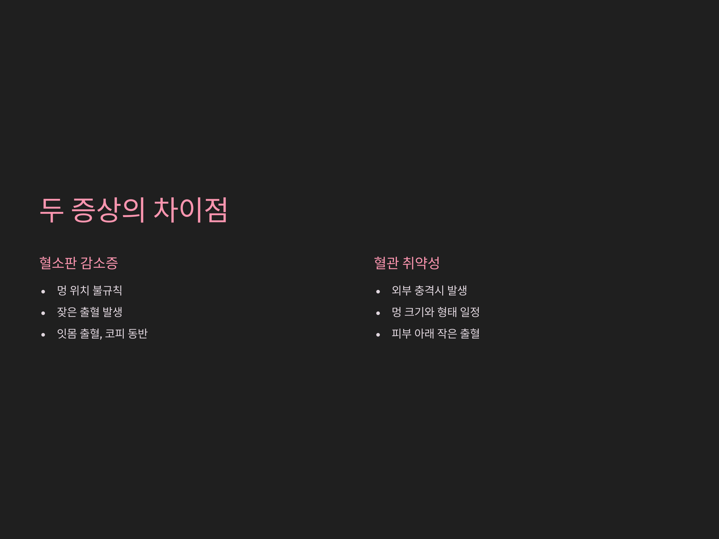 혈소판 감소증 vs 혈관 취약성, 어떻게 구분할까?