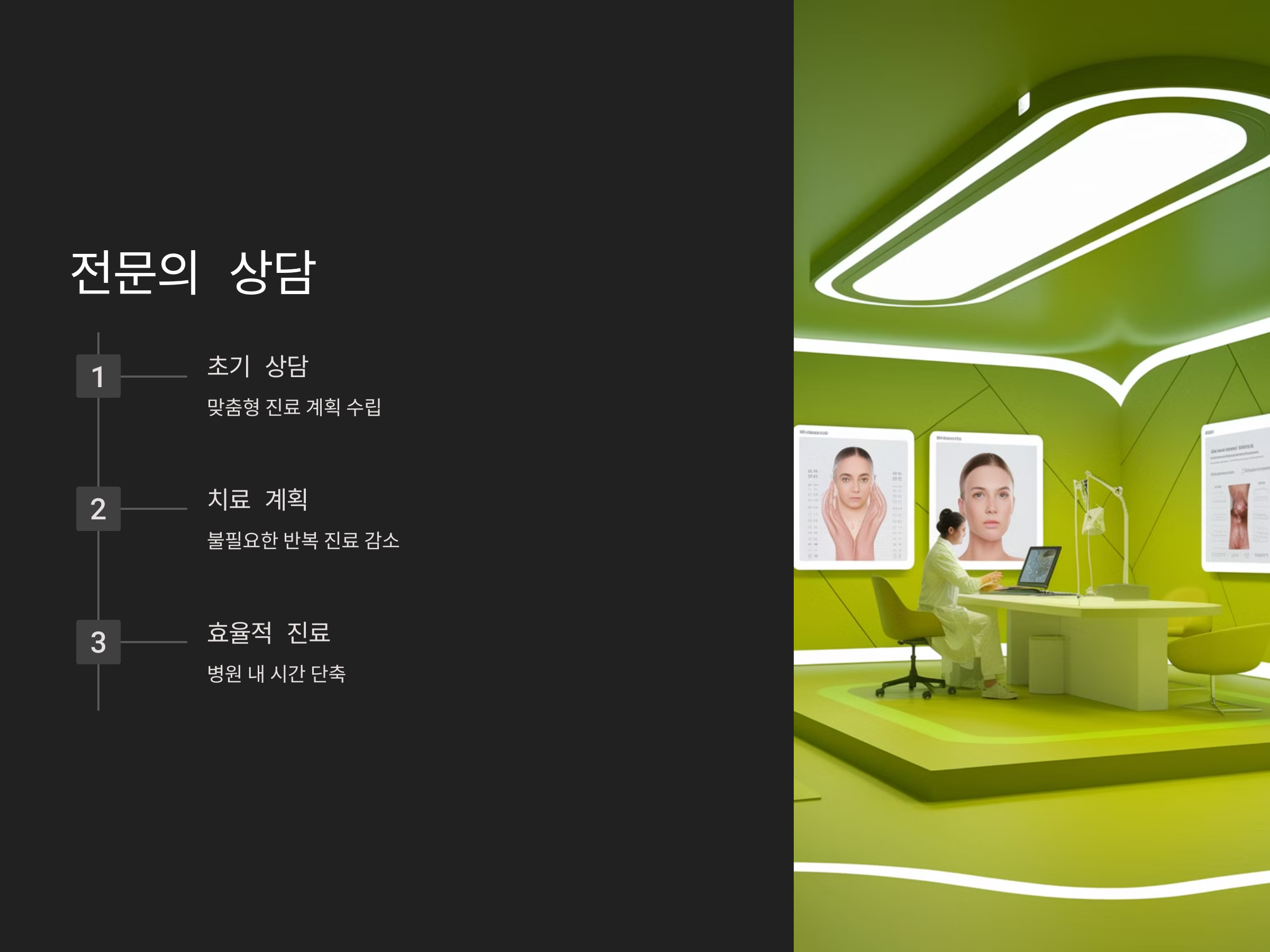 - 초기 상담을 통해 맞춤형 진료 계획을 세우면, 반복 진료나 불필요한 진료 시간을 줄일 수 있습니다. 초기 상담에서 필요한 치료나 검사를 미리 준비해두면, 대기 시간을 효율적으로 관리할 수 있습니다.