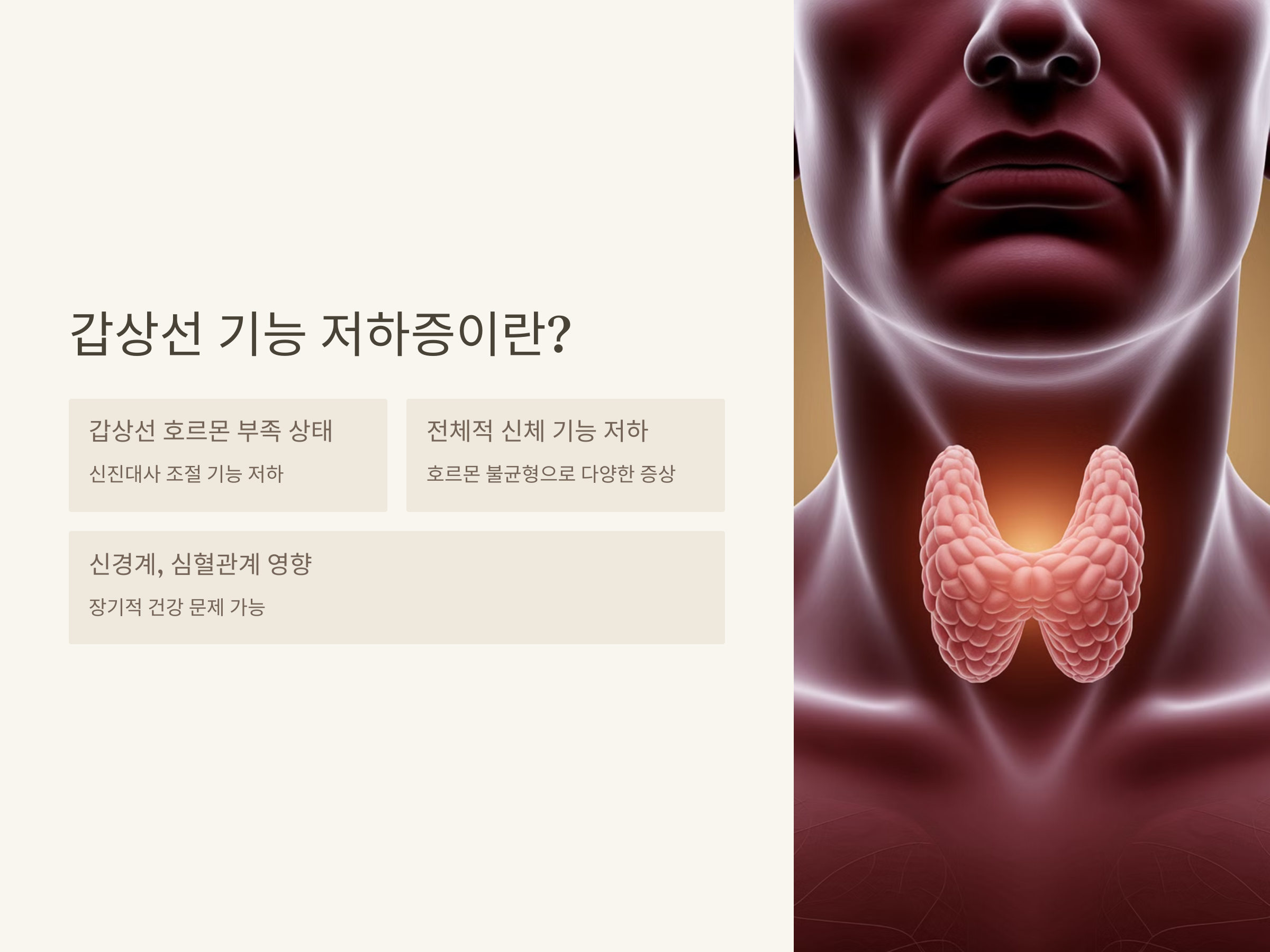 - 갑상선 기능 저하는 주로 호르몬 불균형에 의한 문제입니다.