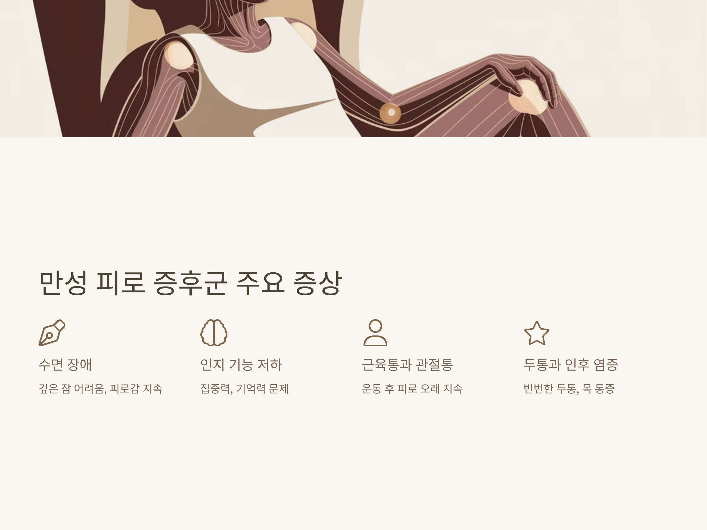 - 피로감: 일상 활동에서 쉽게 피로해지고 회복이 어려움