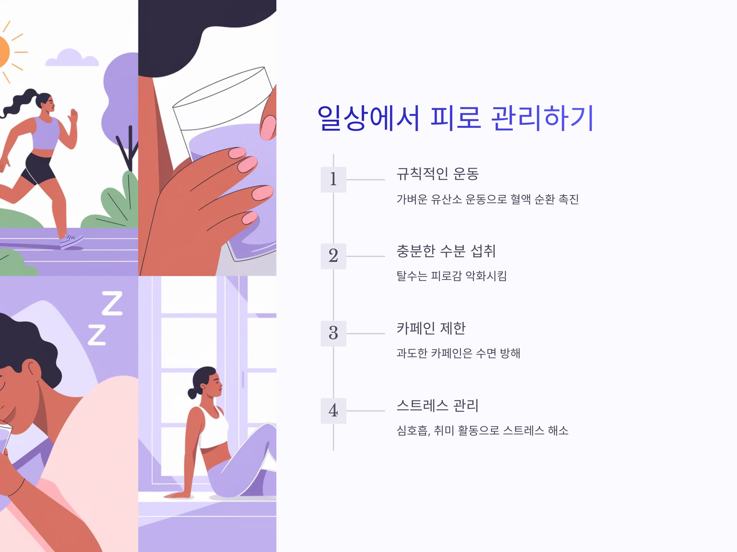 피로를 해소하기 위한 생활 습관 개선과 올바른 식습관을 통해 건강을 관리하고, 필요시 의학적인 도움을 받는 것이 중요합니다. 건강한 몸을 유지하기 위한 첫걸음은 자기 자신을 잘 돌보는 것에서 시작된다는 것을 기억하세요.