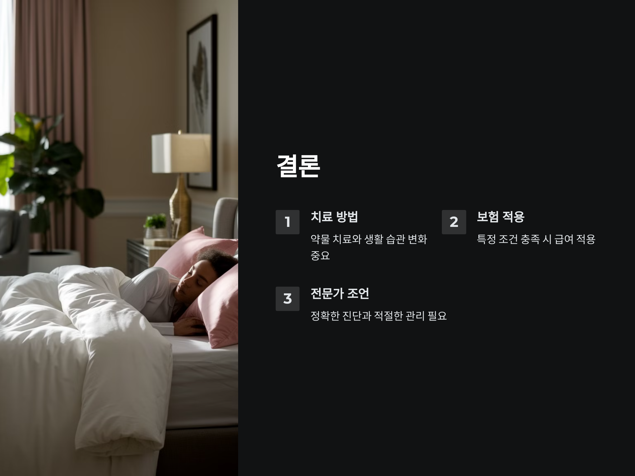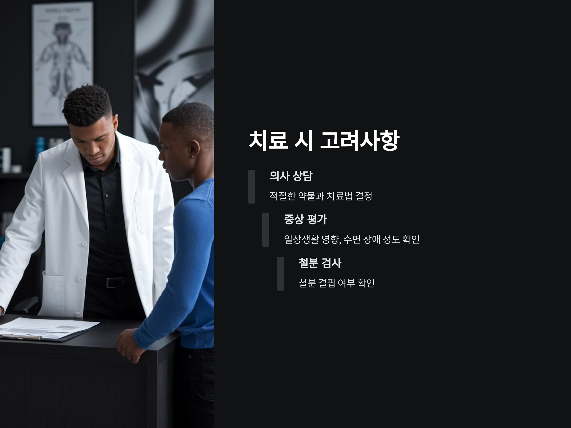 하지불안 증후군에 대한 치료는 약물 치료와 생활 습관 변화가 중요한 부분을 차지합니다. 건강보험 급여는 특정 조건에 맞는 환자에게만 적용되므로, 치료 시작 전 반드시 의사와의 상담을 통해 적절한 약물과 치료 방법을 결정해야 합니다. 또한, 철분 보충제는 철분 결핍이 확인된 경우에만 급여가 적용되므로, 이를 점검하고 치료하는 것이 중요합니다.