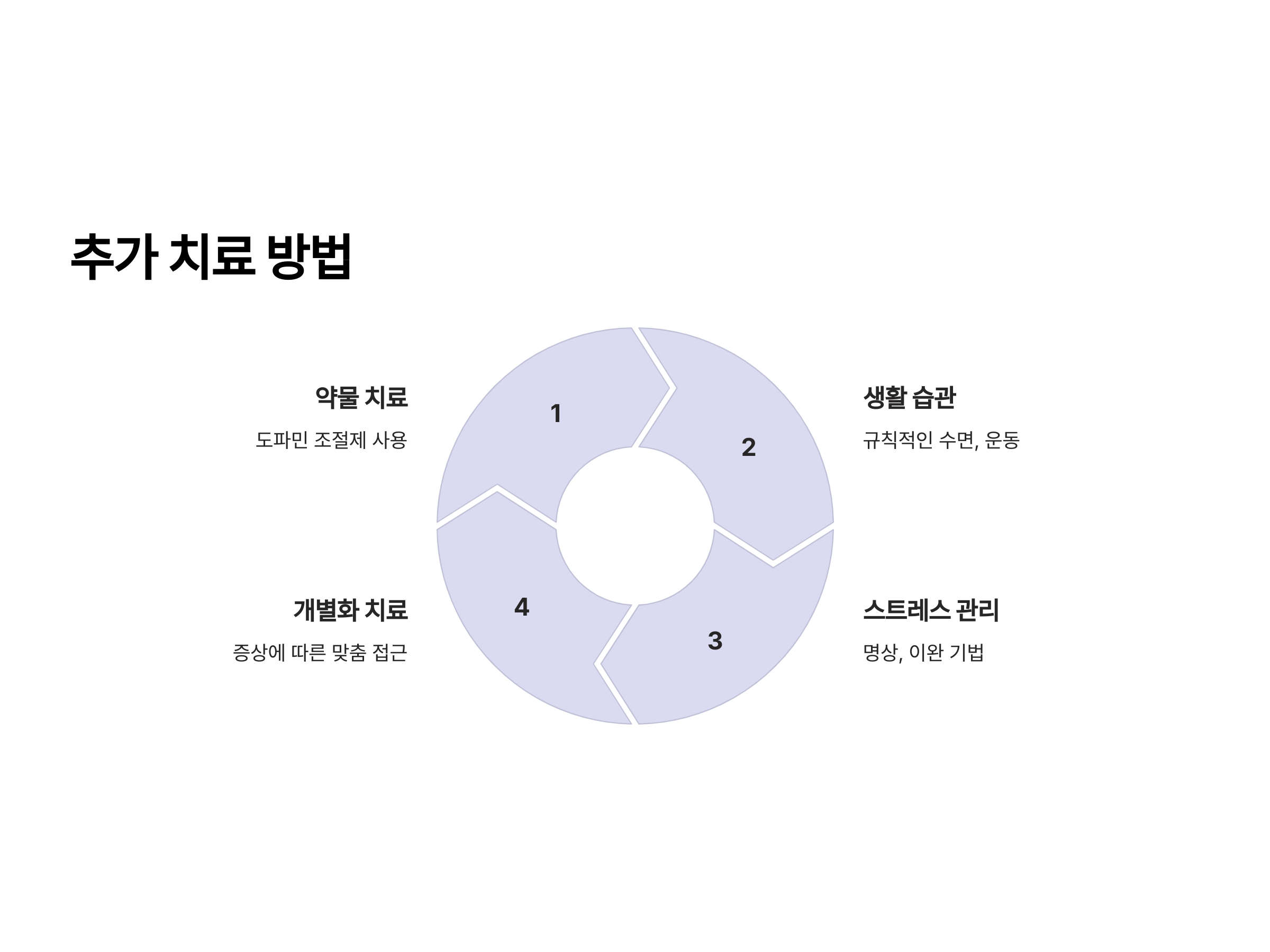 철분 보충은 하지불안 증후군의 주요 치료 방법 중 하나지만, 모든 경우에 효과를 보이는 것은 아닙니다. 일부 환자는 철분 보충 외에도 다른 치료가 필요할 수 있습니다. 예를 들어, 도파민 조절제를 사용하는 약물 치료나, 생활 습관 개선, 스트레스 관리 등이 병행될 수 있습니다.