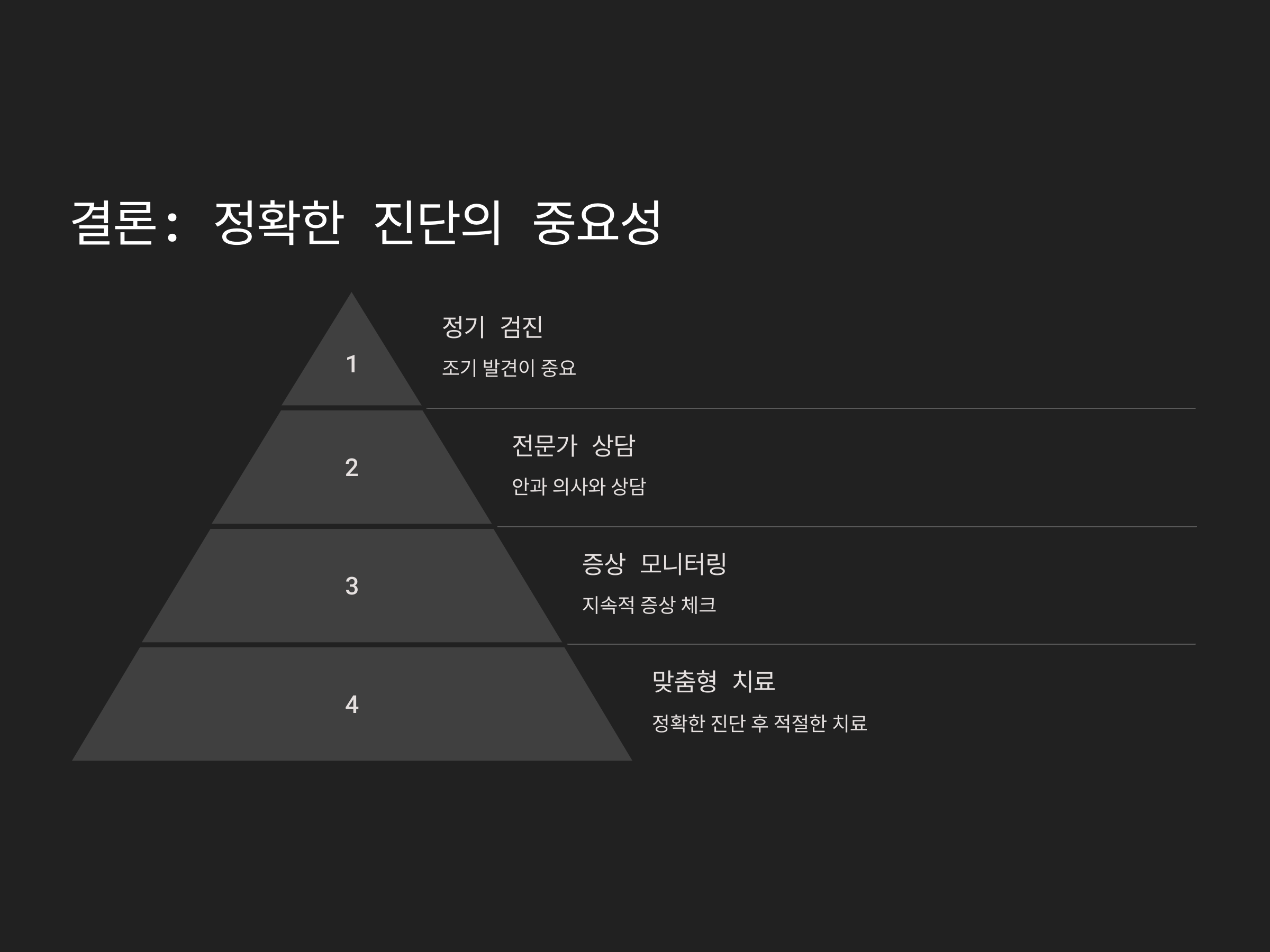 눈의 건조함과 충혈이 반복될 때 가장 중요한 것은 정확한 진단입니다. 안구건조증은 대개 건조함과 이물감이 특징이고, 백내장은 흐릿한 시야와 빛 번짐이 주요 증상입니다. 증상에 맞는 적절한 치료를 받기 위해서는 안과 전문의를 찾아 정확한 검사를 받아보는 것이 가장 중요합니다. 조기에 진단을 받고 적절히 치료를 받으면 더 이상 문제가 되지 않으므로, 작은 증상이라도 간과하지 말고 전문가와 상담하는 것이 좋습니다.